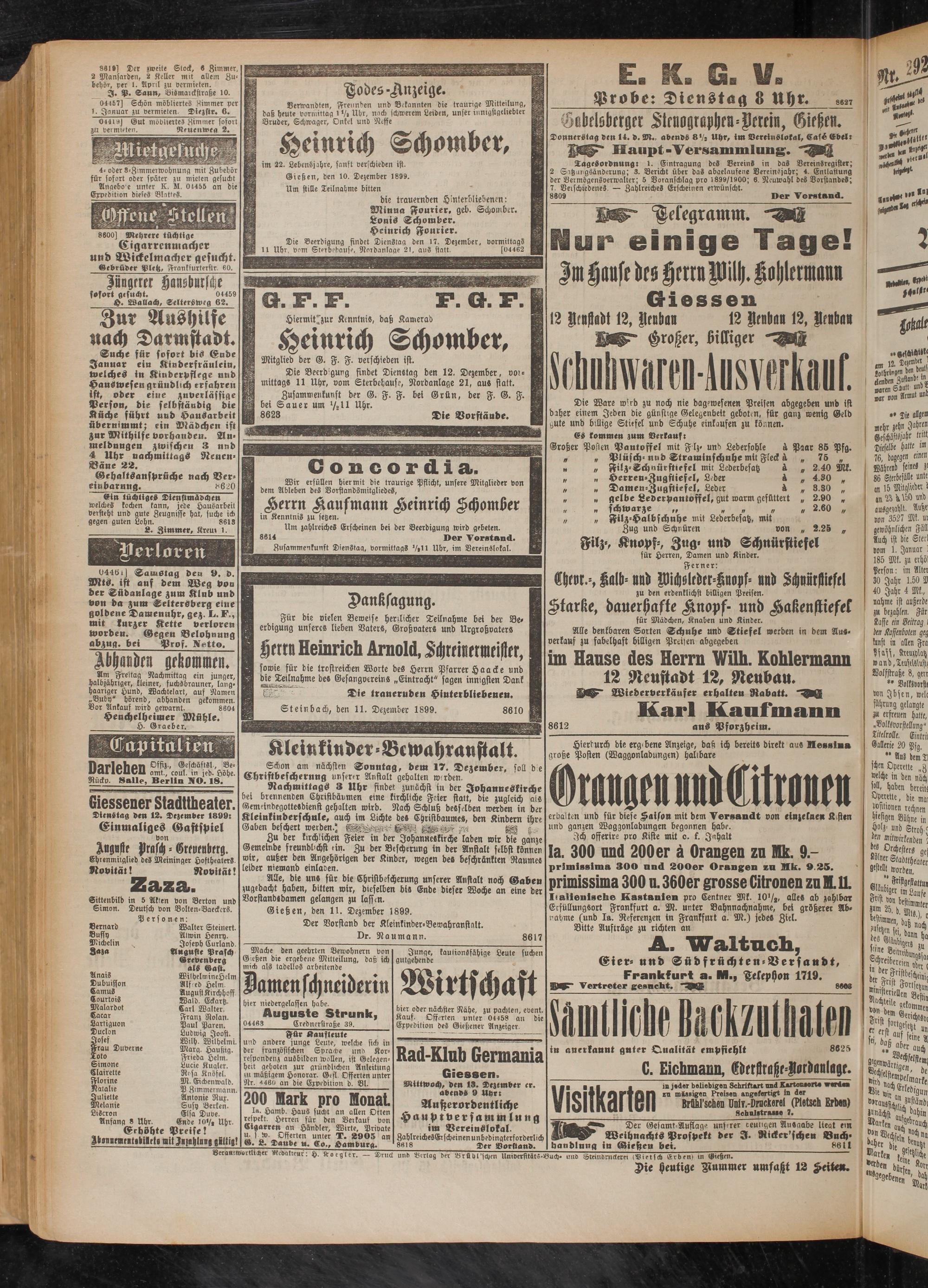Gießen, den 10. Dezember 1899.