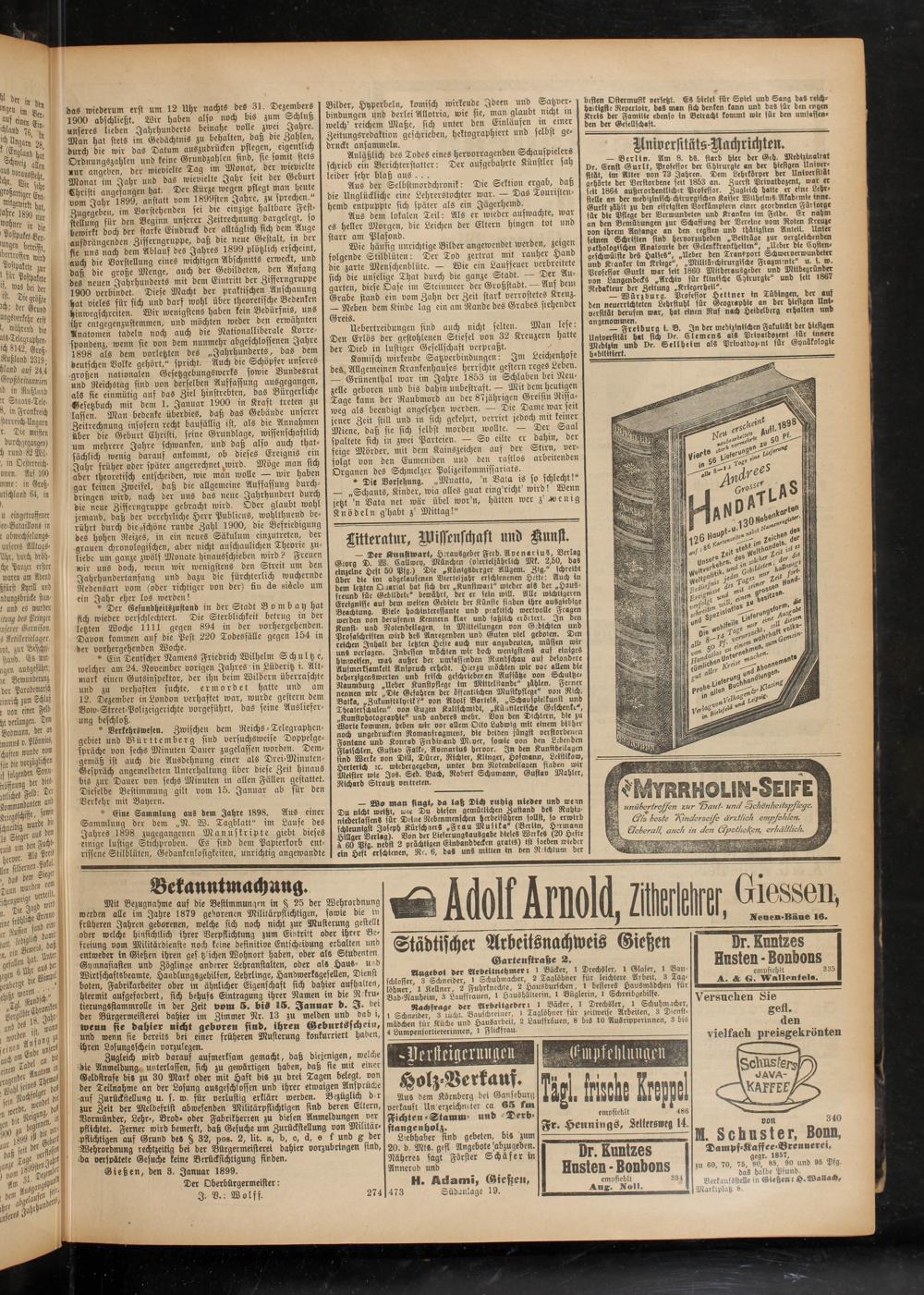das wiederum erst um 12 Uhr nachts des 31. Dezenchers 1900 abschließt. Wir haben also noch bts zum Schluß unseres lieben Jahrhunderts beinahe volle zwet Man hat stets im Gedächtnis zu behalten, daß die Zahlen, durch die wir das Datum auszudrücken pflegen, etgentltch Ordnungszahlen und keine Grundzahlen find, fomit fte 5 uur angeben, der wievielte Tag /m Mona, der wnevte t Monat im Jahr und das wieüielte Jahr seit der Geburt Christi anqefangen hat. Der Kürze wegen pflegt man heute vom Jahr 1899, anstatt vom I899sten Jahre, zu sprechen. Zugegeben, im Borstehenden sei die einzige haltbare Feststellung für den Beginn unserer Zeitrechnung dargelegt, )o bewirkt doch der starke Eindruck der alltäglich sich dem Auge I aufdrängenden Zifferngrnppe, daß die neue Gestalt, in der sie uns nach dem Ablauf des Jahres 1899 plötzlich erscheint, auch die Vorstellung eines wichtigen Abschnitts erweckt, und daß die große Menge, auch der Gebildeten, den Anfang des neuen Jahrhunderts mit dem Eintritt der Zisferngruppe I 1900 verbindet. Diese Macht der praktischen Anschauung hat vieles für sich und darf wohl über theoretische Bedenken hinwegschreiten. Wir wenigstens haben kein Bedürfnis, uns I ihr entgegenzustemmen, und möchten weder den erwähnten I Anatomen tadeln noch auch die Nationalliberale Korre- I spoudenz, wenn sie von dem nunmehr abgeschlossenen Jahre 1898 als dem vorletzten des „Jahrhunderts, das dem deutschen Volke gehört," spricht. Auch die Schöpfer unseres großen nationalen Gesetzgebungswerks sowie Bundesrat I und Reichstag sind von derselben Auffassung ausgegangen, als sie einmütig auf das Ziel hinstrebten, das Bürgerliche I Gesetzbuch mit dem 1. Januar 1900 in Krast treten zu I lassen. Man bedenke überdies, daß das Gebäude unserer Zeitrechnung insofern recht baufällig ist, als die Annahmen I über die Geburt Christi, seine Grundlage, wissenschaftlich um mehrere Jahre schwanken, und daß also auch thalsächlich wenig darauf ankommt, ob dieses Ereignis ein Jahr früher oder später angerechnet ^wird. Möge man sich aber theoretisch entscheiden, wie man wolle — wir haben gar keinen Zweifel, daß die allgemeine Auffassung durchdringen wird, nach der uns das neue Jahrhundert durch die neue Zisserngruppe gebracht wird. Oder glaubt wohl | jemand, daß der verehrliche Herr Publicns, wohlthuend berührt durch die schöne runde Zahl 1900, die Beseitigung des hohen Reizes, in ein neues Säkulum einzutreten, der grauen chronologischen, aber nicht anschaulichen Theorie zuliebe um ganze zwölf Monate hinausschieben wird? Freuen wir uns doch, wenn wir wenigstens den Streit um den Jahrhundertanfang und dazu die fürchterlich wuchernde Redensart vom (oder richtiger von der) fin de sidcle um ein Jahr eher los werden!