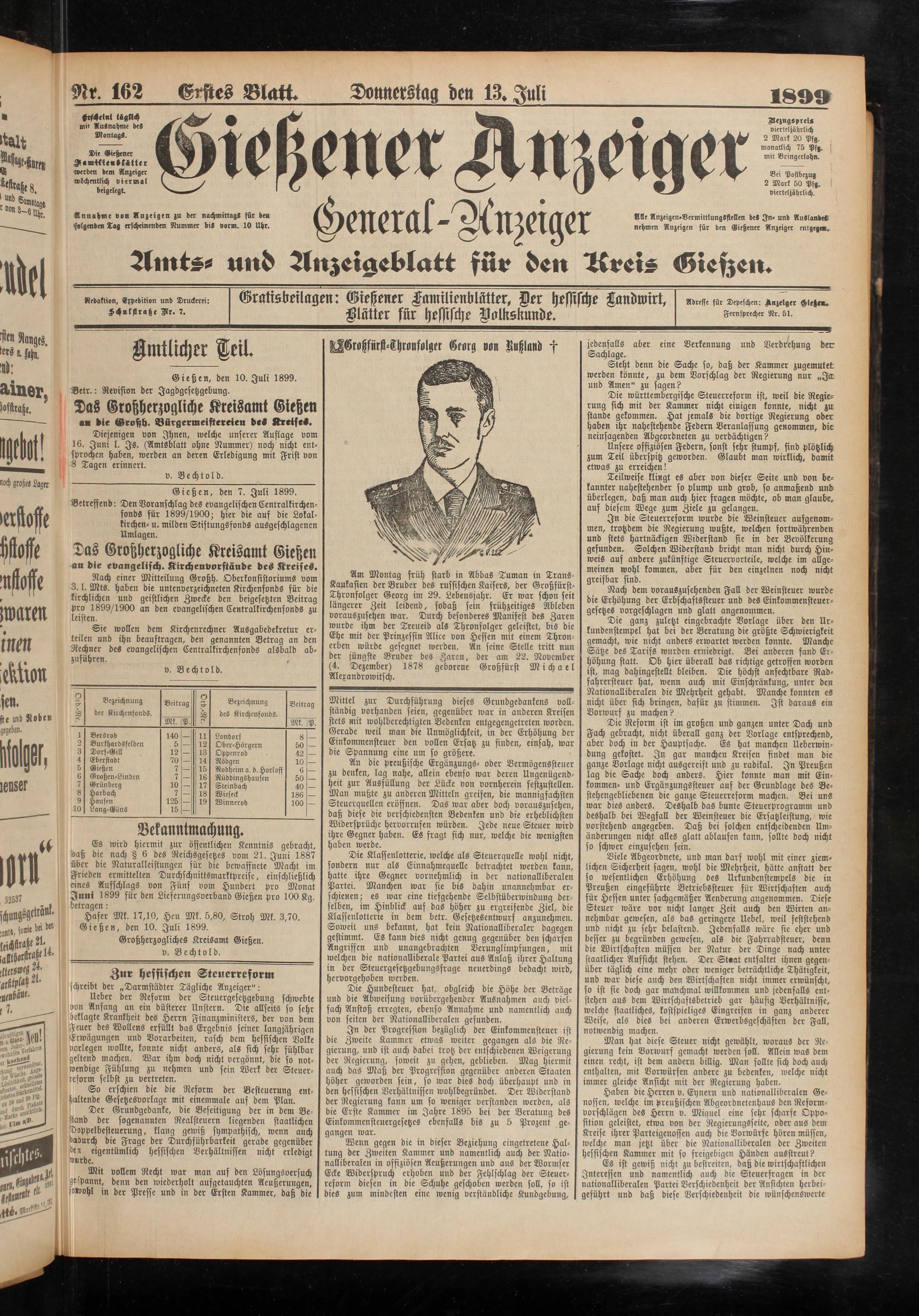 Hafer Mk. 17,10, Heu Mk. 5,80, Stroh Mk. 3,70. Gießen, den 10. Juli 1899.