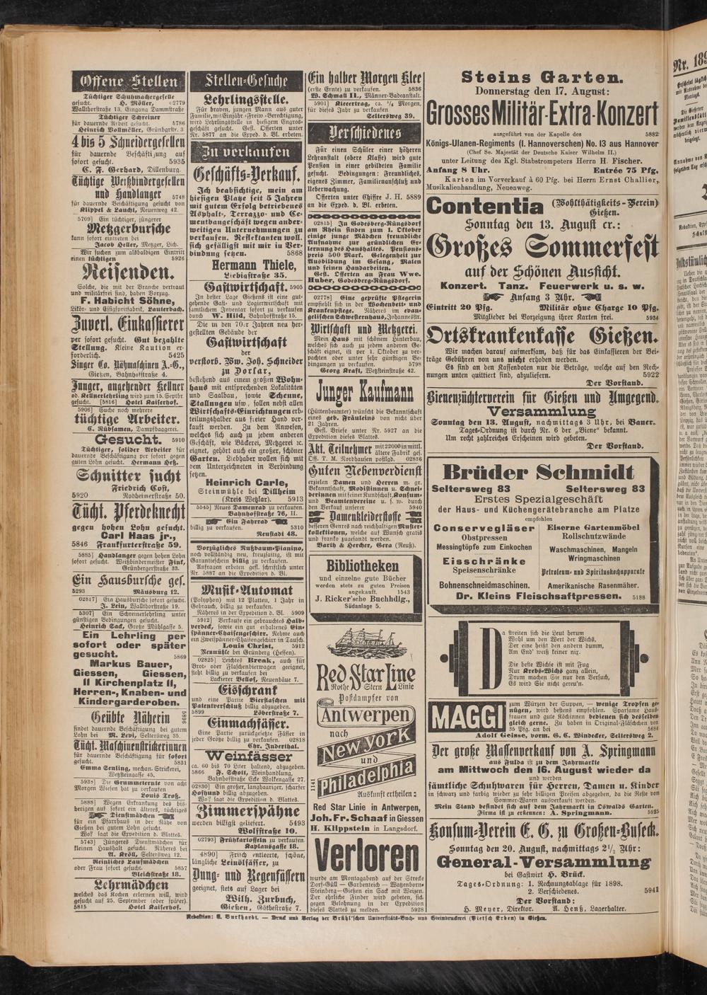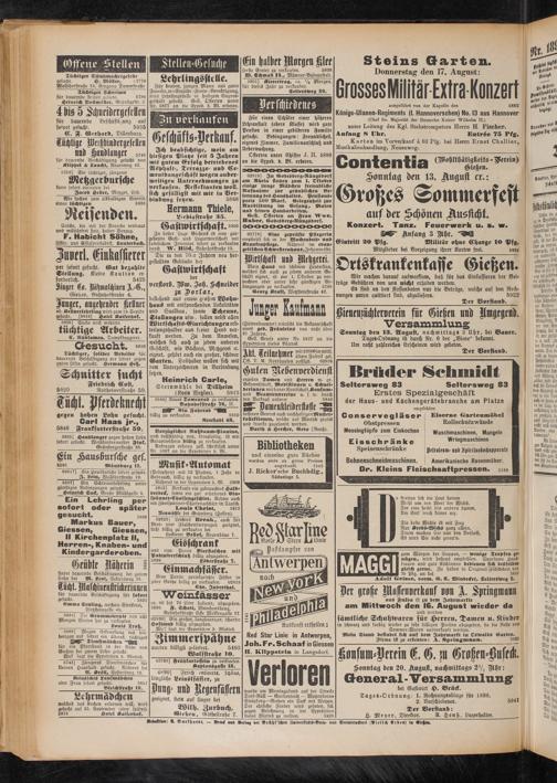 In bester Lage Gießens ist eine gutgehende Gast- und Logierwirtschaft mit sämtlichem Inventar sofort zu verkaufen durch W. Hi Id, Bahnhofstraße 15.