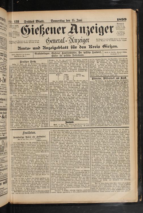 Gratisbeilagen: Gießener Familienblätter, Der hessische Landwirt, Stätter sür hessische Volkskunde.