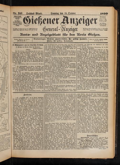 Gratisbeilagen: Gießener Familienblätter, Der hessische Landwirt, Klätter für hessische Volkskunde.