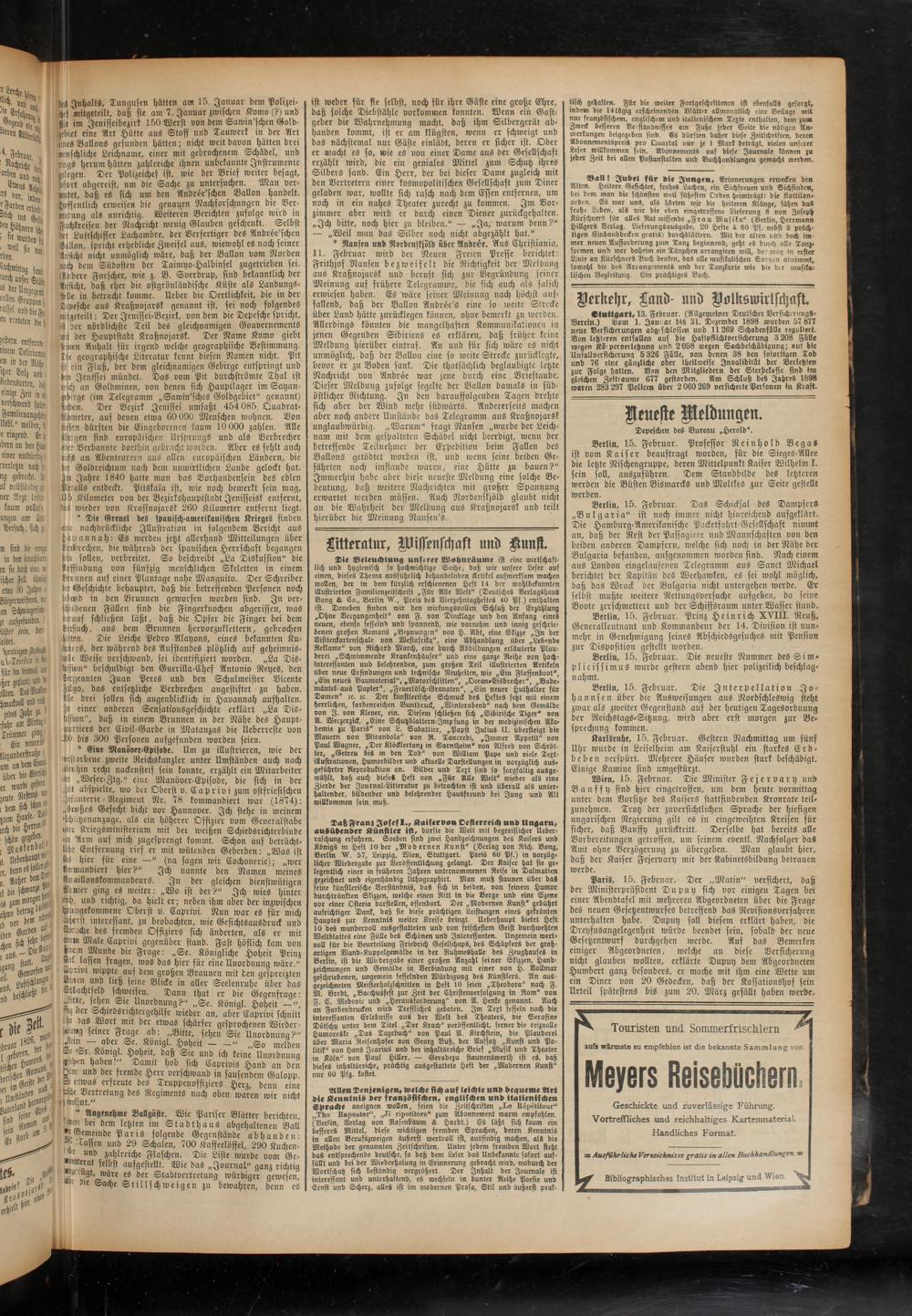 Berlin, 15. Februar. Das Schicksal des Dampfers „Bulgaria" ist noch immer nicht hinreichend aufgeklärt. Die Hamburg-Amerikanische Packetfahrt-Gesellschast nimmt an, daß der Rest der Passagiere und Mannschaften von den beiden anderen Dampfern, welche sich noch in der Nähe der Bulgarin befanden, aufgenommen worden sind. Nach einem aus London eingelaufenen Telegramm aus Sanct Michael berichtet der Kapitän des Weehawken, es sei wohl möglich, daß das Wrack der Bulgaria nicht untergehen werde. Er selbst mußte weitere Rettungsversuche aufgeben, da feine Boote zerschmettert und der Schiffsraum unter Wasser stand.