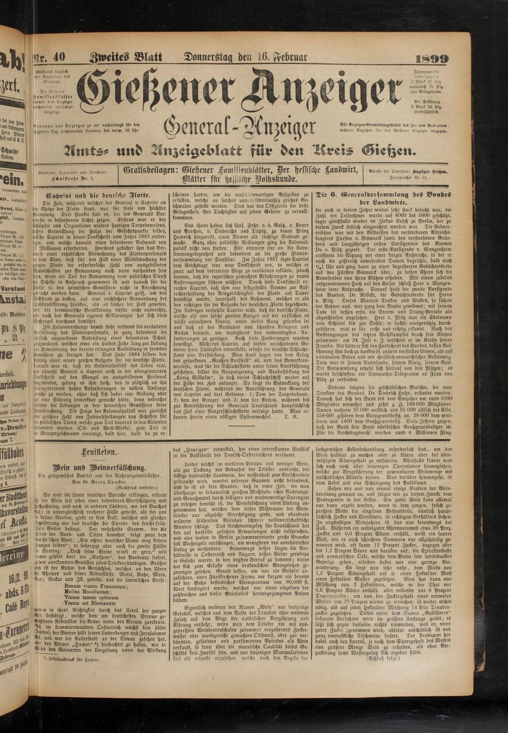 !'!r. 40 Zweites Blatt Donnerstag den 16. Februar