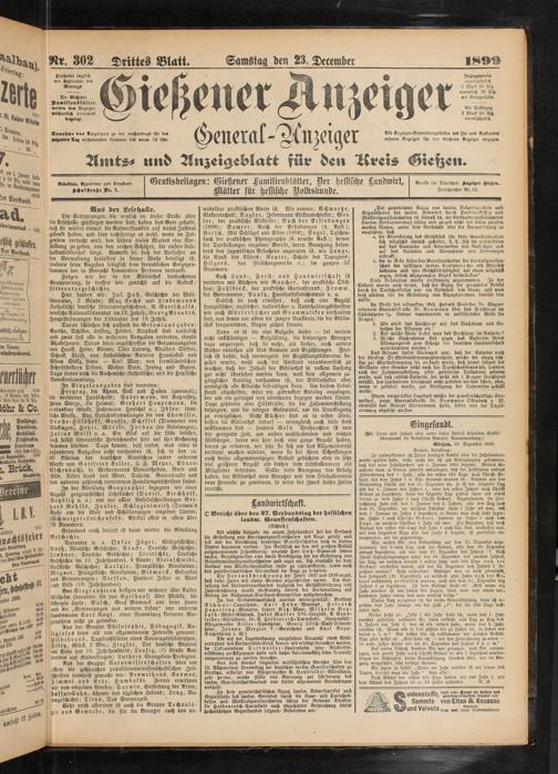 Gratisbeilagen: Gießener Familienblätter, Der hessische Landwirt, Klätter für hessische UolKsKunde.