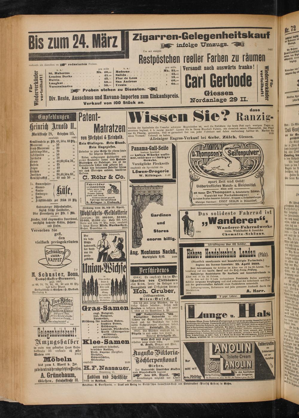 Redaktion: «. Burkhardt. - Druck und Verlag der Brühl'schen UniversitätS-Buch. und Etrindruckerei (Pietsch Erden) in «ießm.