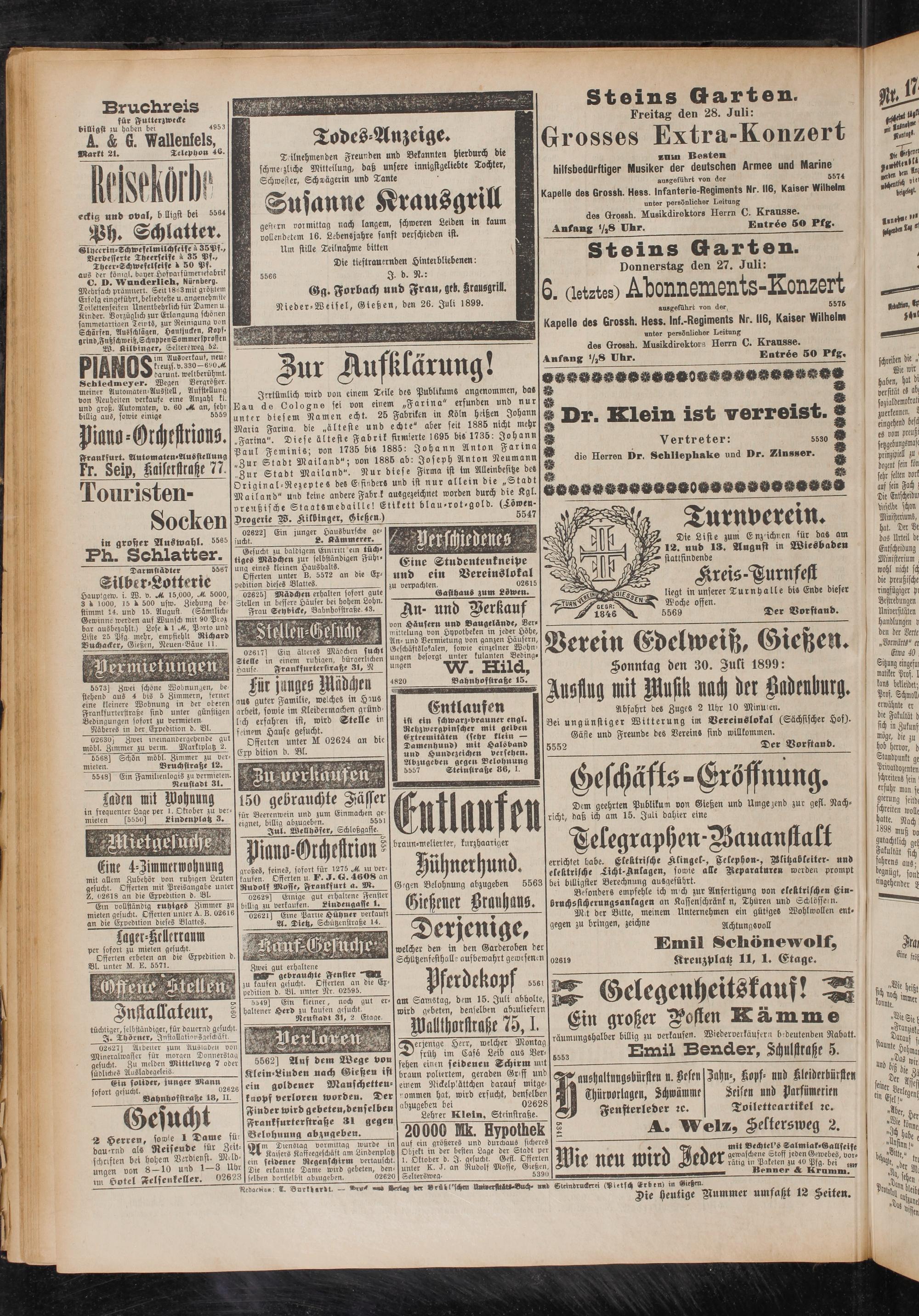 Nieder-Weisel, Gießen, den 26. Juli 1899.