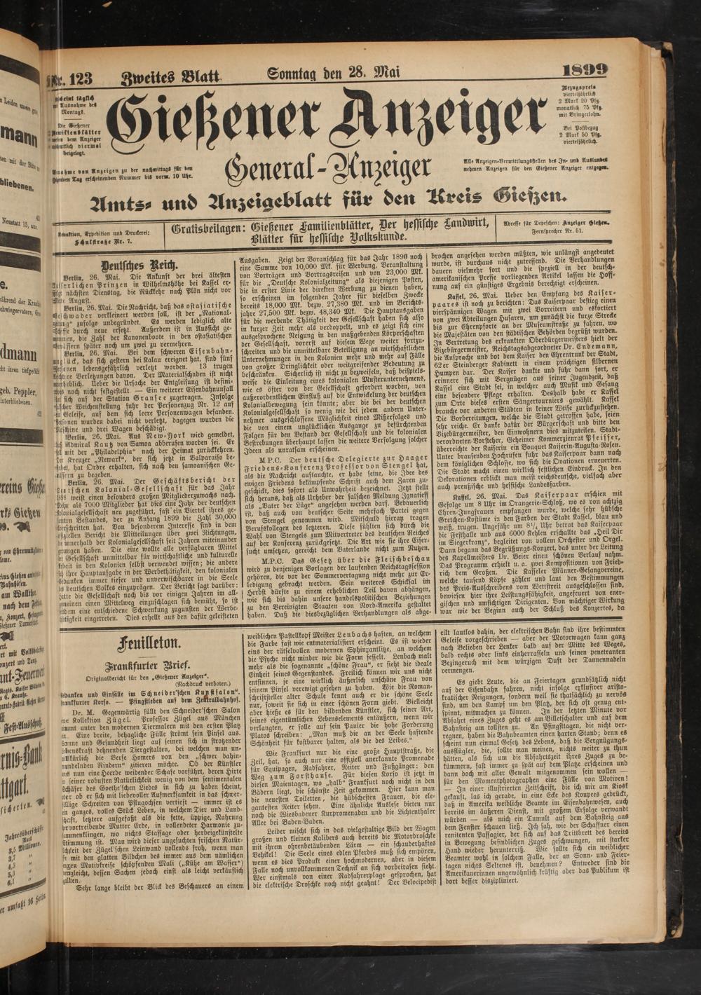 Originalbericht für den „Gießener Anzeiger-.
