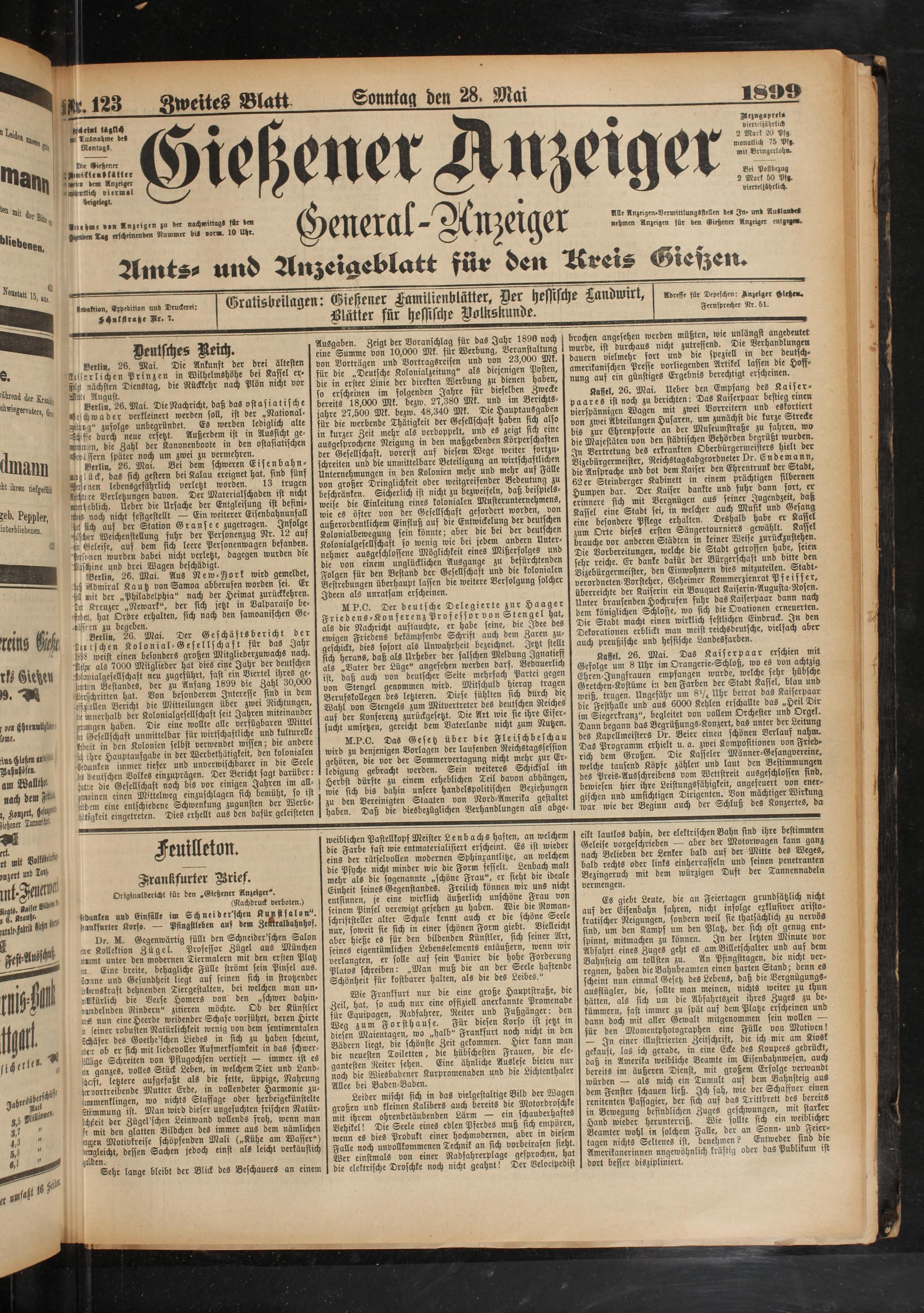 Bei Postbezug 2 Mark 50 Pf».