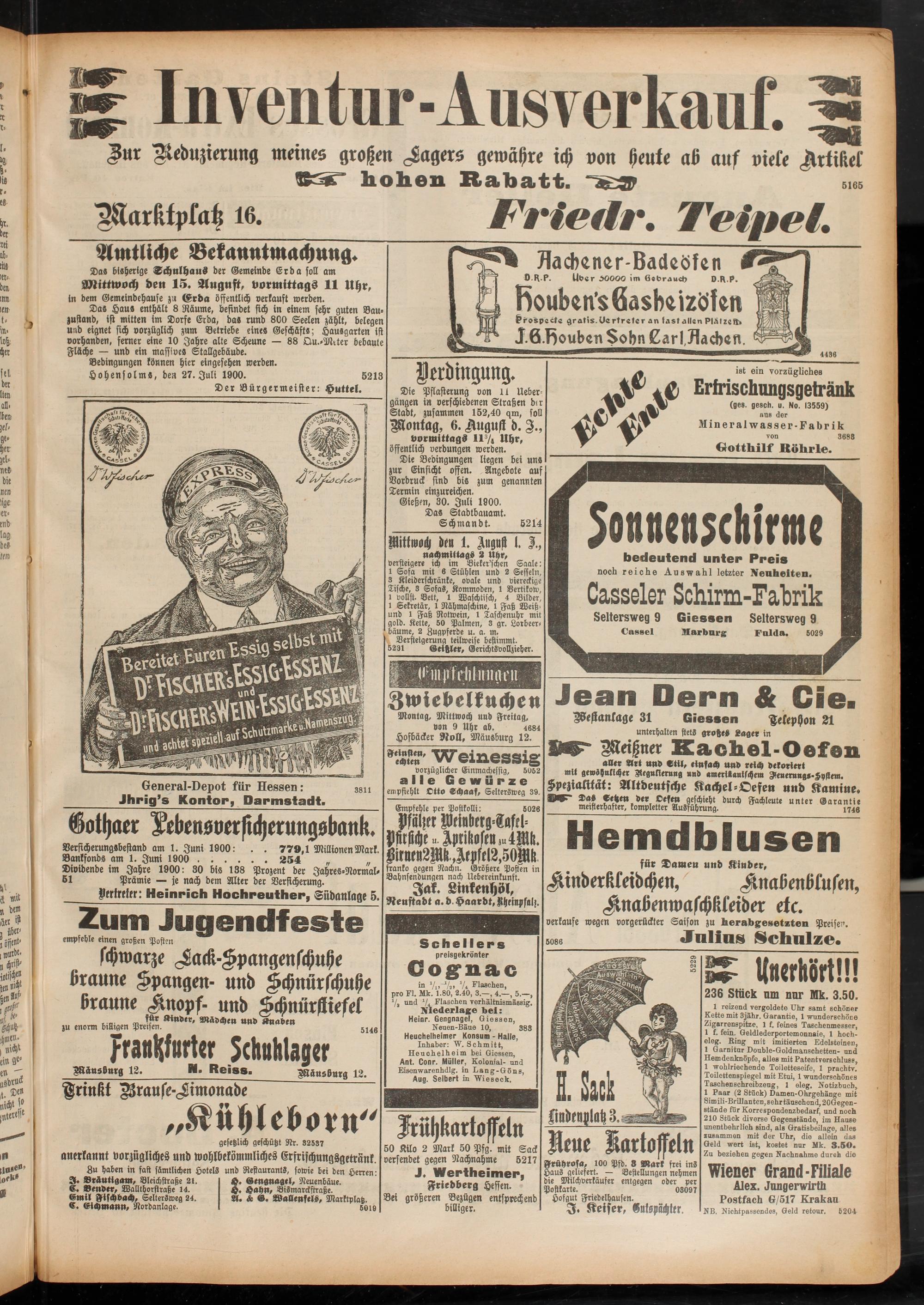 Gießen, 30. Juli 1900. Das Stadtbauamt.