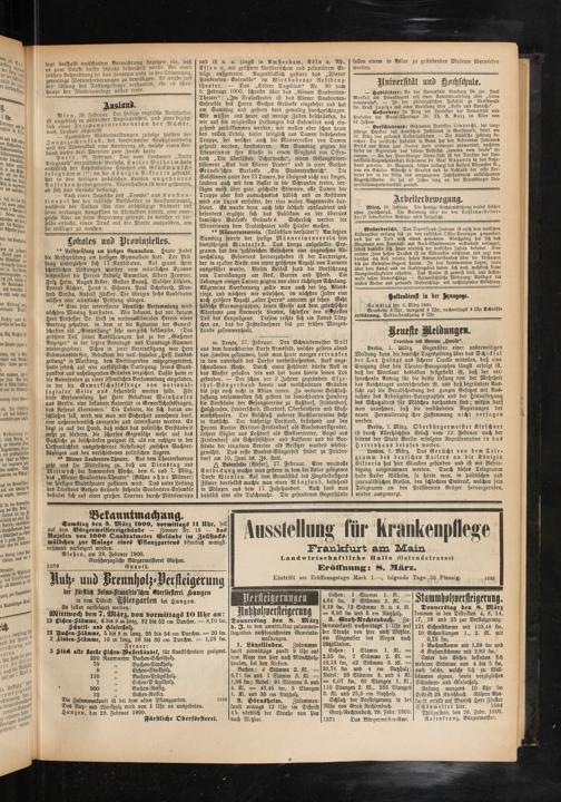 Ausstellung für Krankenpflege Frankfurt am Main Landwirtschaftliche Halle (Ostendstrasse) Eröffnung: 8. März.