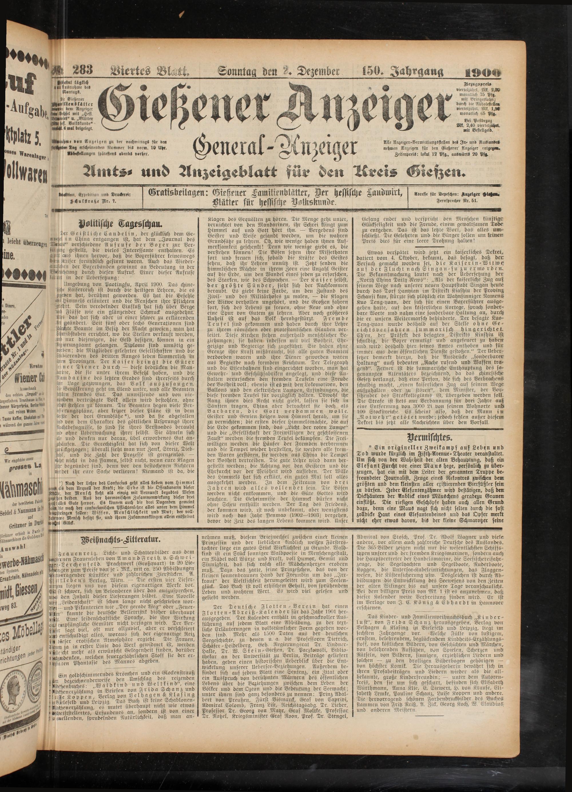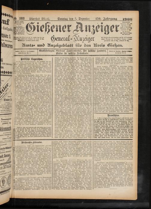 Gratisbeilagen: Gießener Famiiienvlätter, Jer hessische Kaudmirt, Klarier füf hessische AatKsKnnbe.