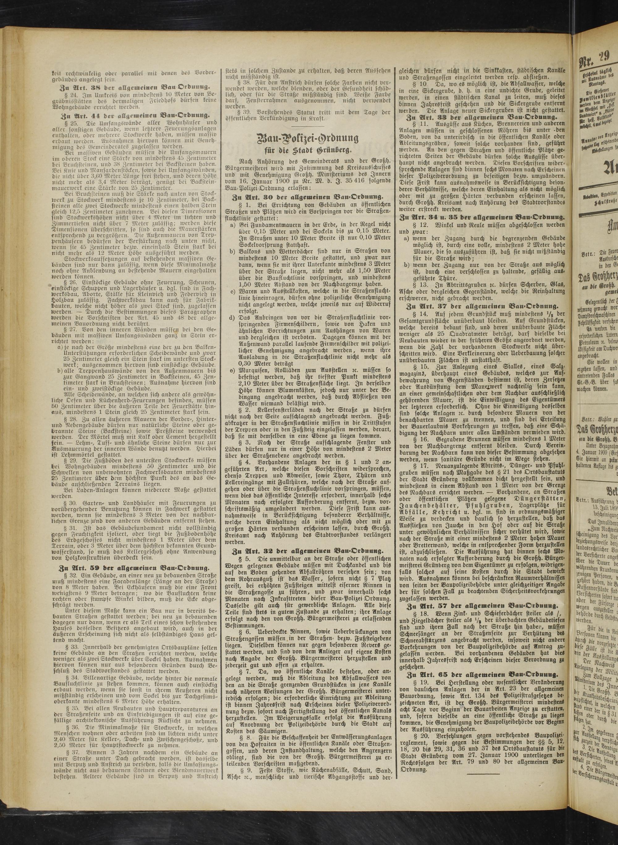 Zu Art. 37 der allgemeiueu Bau Orduung.