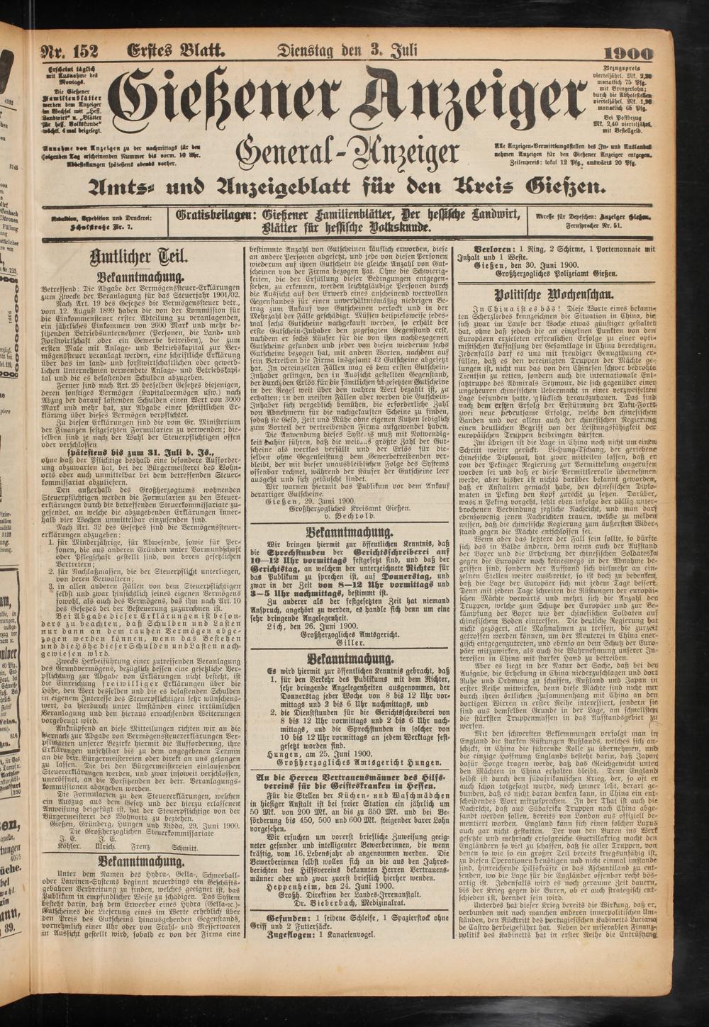 Gießen, Grünberg/ Hungen und Nidda, 29. Juni 1900.