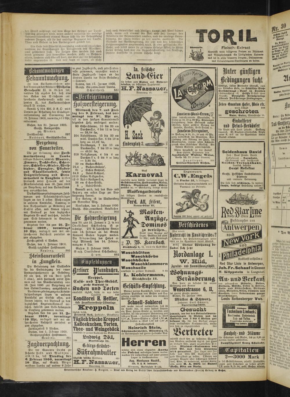 Reiskirchen, den 2. Februar 1900 Großh. Bürgermeisterei Reiskirchen _________Wagner.______902