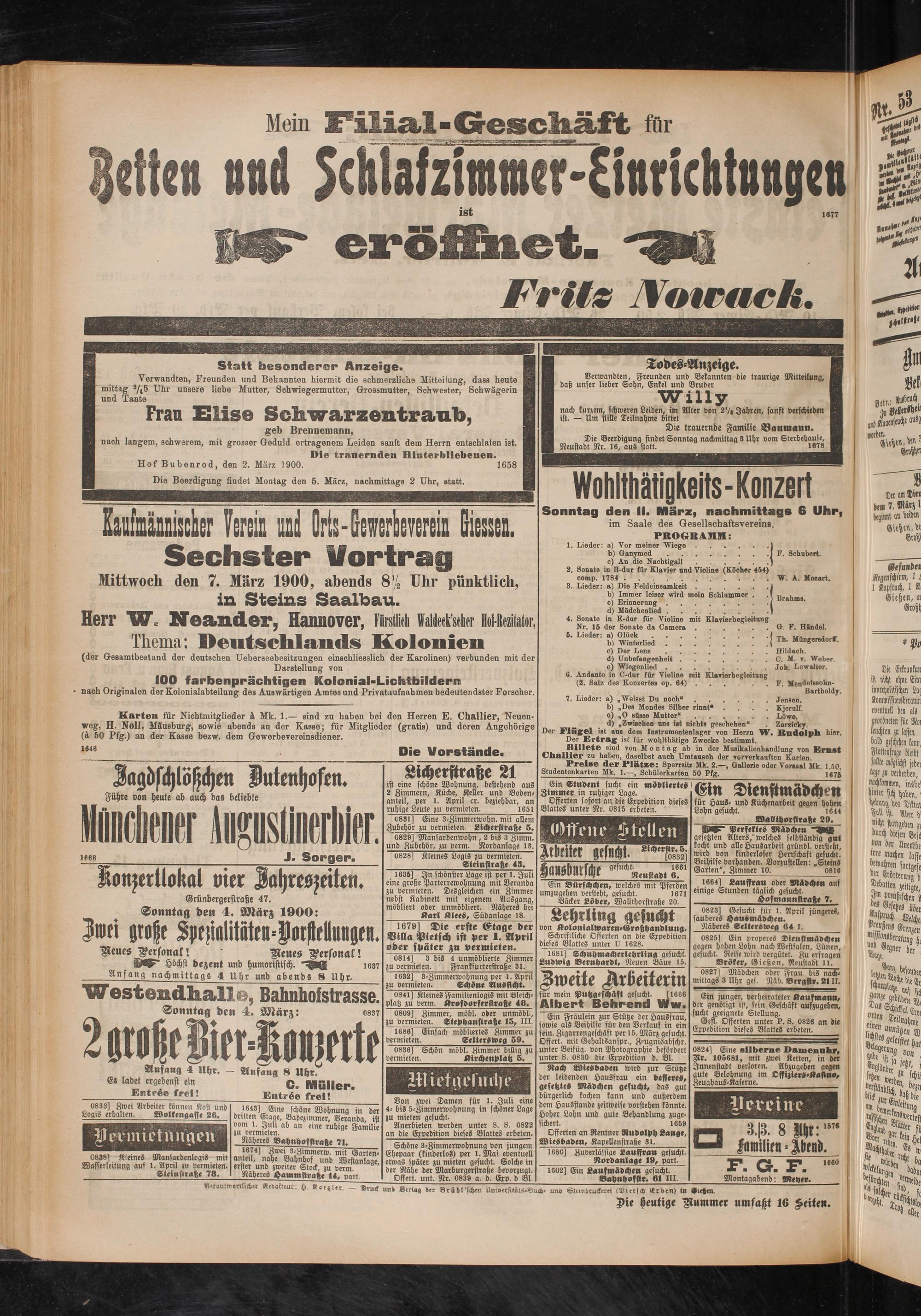 Sonntag den 4. März 1900: