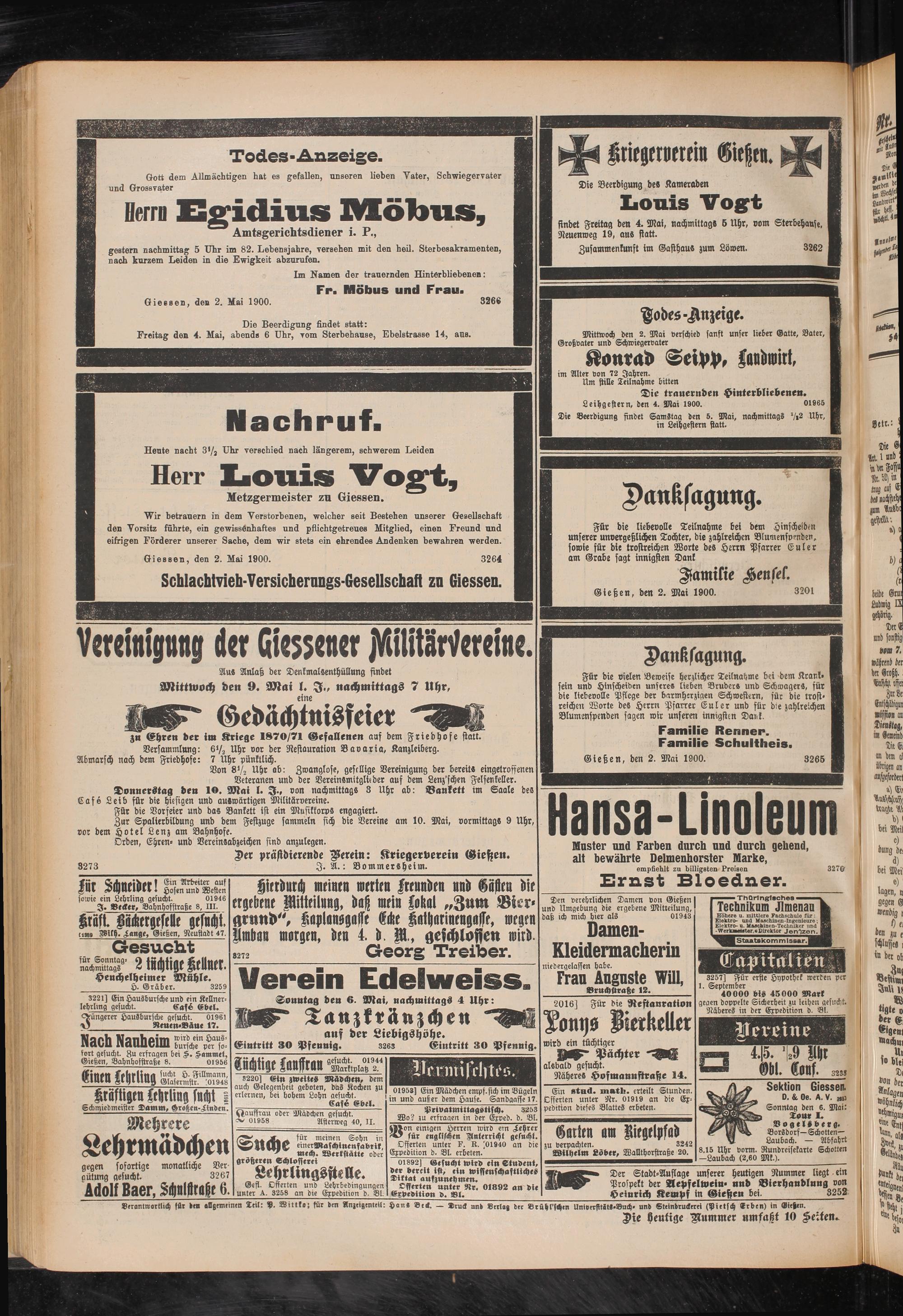 Gießen, den 2. Mai 1900. 3265