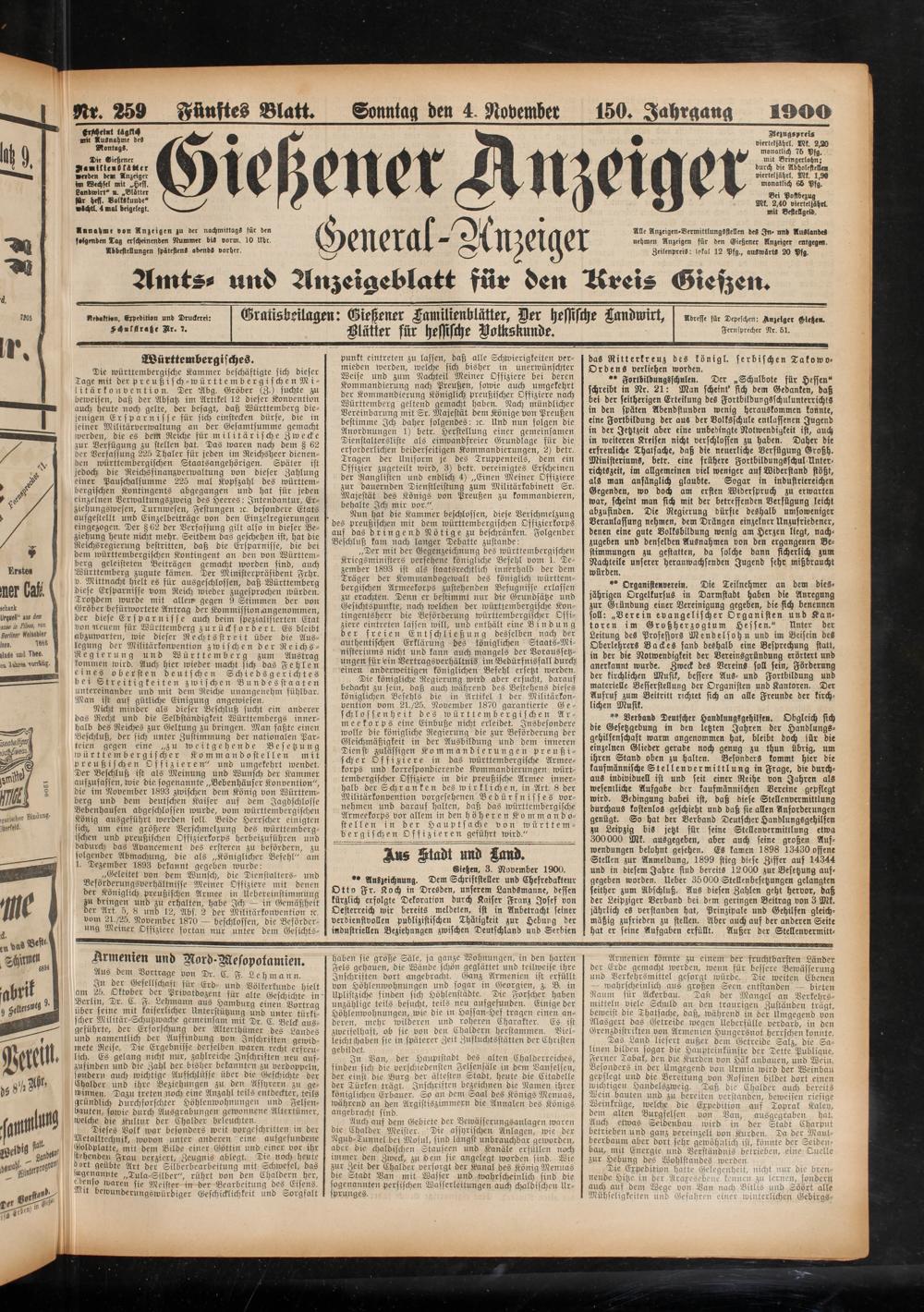 Nr. L5S Fünftes Blatt. Sonntag den 4. November ISO^Jahrgang 1900
