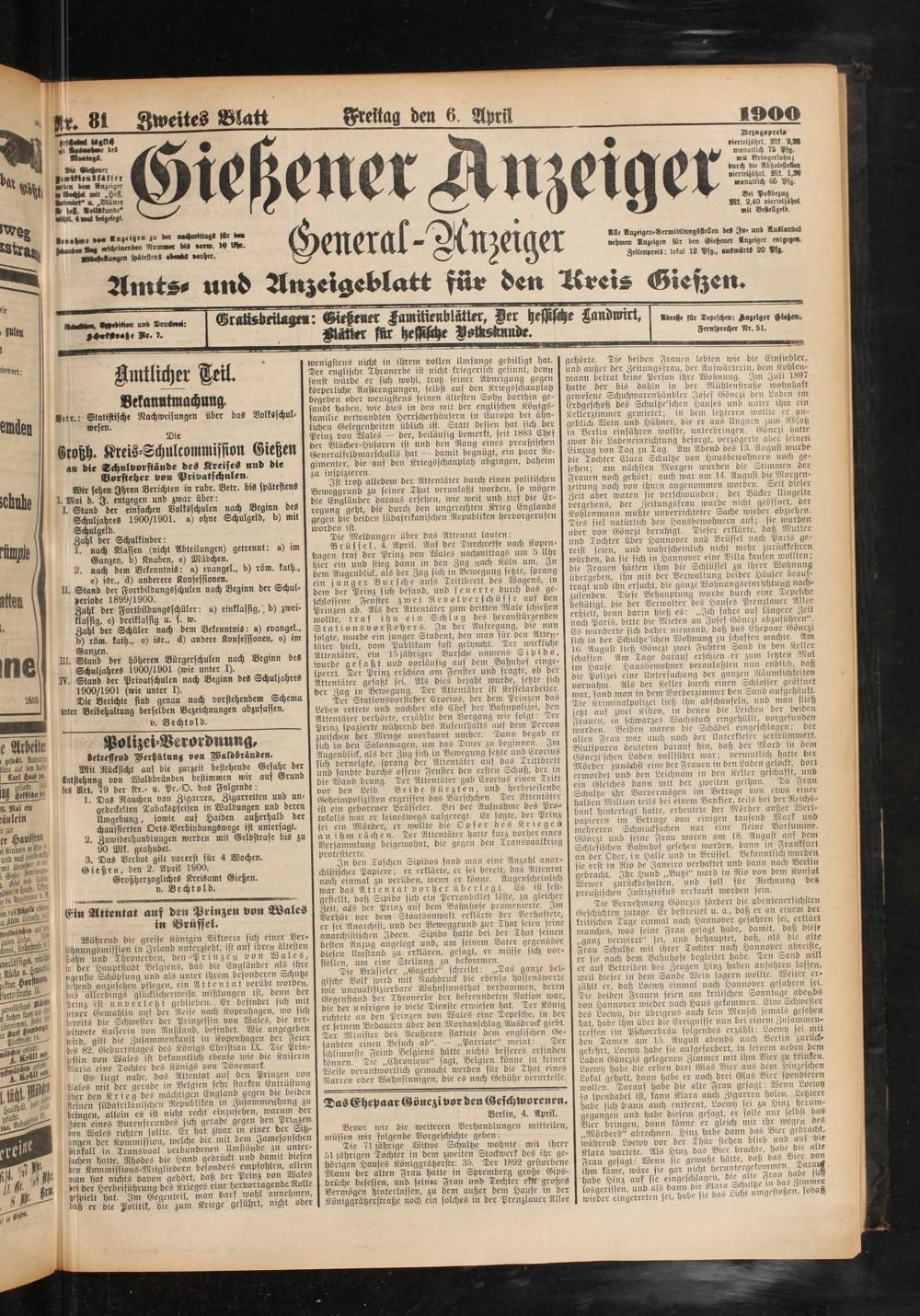 3. Das Verbot gilt vorerst für 4 Wochen. Gießen, den 2. April 1900.