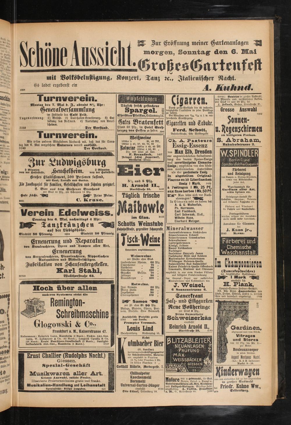 In Giessen echt zu haben bei A. & 6. Wallenfels, Ph. Herrmann, Emil Fischbach, Carl Schwaab, Hofl., Wilhelm Haas, Eberhard Metzger.