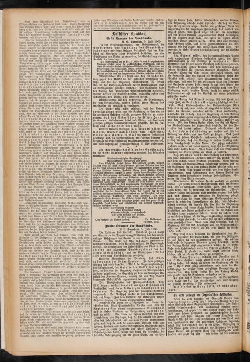 Die Tribünen sind überfüllt. Präsident Haas macht vor Eintritt in die Tagesordnung Mitteilung von den anderweitigen Besetzungen der Aemter in der Ersten Kammer der Stände. — Die Wahl des Abg. Schuchard (Beerfelden- Hirschhorn-Wimpsen) wird für giltig erklärt, die Regierungsvorlage, die Verwendung von Ueberschüffen von Eintrittsgeldern und allgemeinen Studiengeldern bei der Technischen Hochschule aus den Etatsjahren 1898 bis 1901 wird nach Ausschußantrag genehmigt.