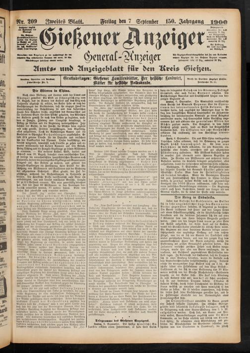 Gratisbeilage«: Gießener Zamilienblätter, Ker heWhe Landwirt, Matter Mr heMfchr Nallrsknndr.________________