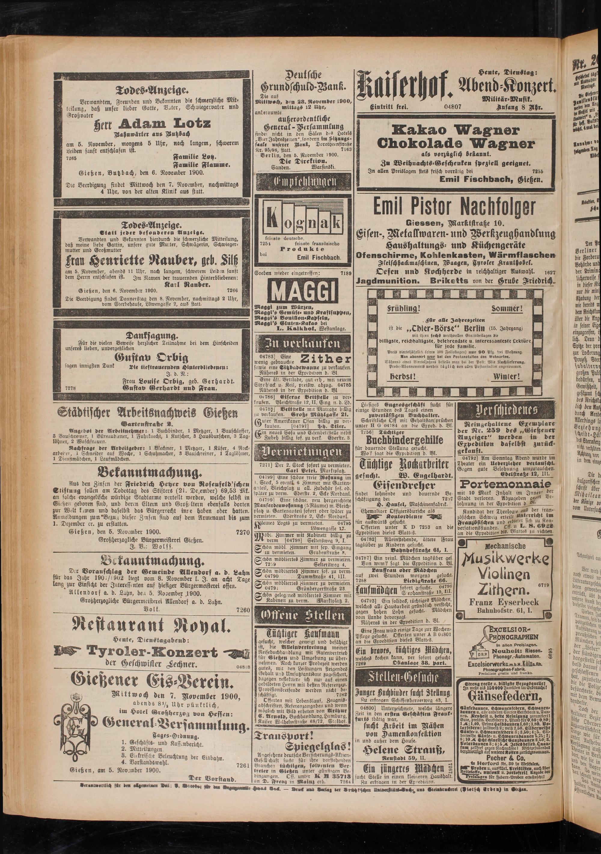 Mittwoch den 7. Dovemöer 1900, a^nds 81/, Uhr pünktlich, im Hotel Grohherzog von Hessen:
