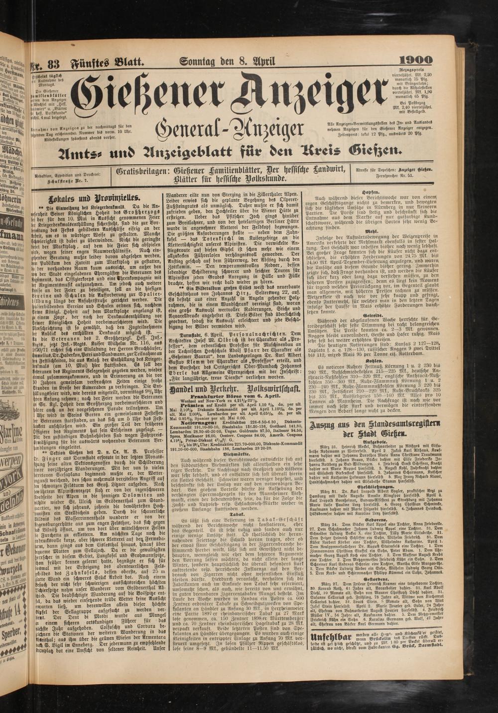 März 24. Dem Bäcker Karl Appel eine Tochter, Anna Friederike. 27. Dem Schuhmacher Johann Ludwig Appel eine Tochter. 31. Dem Schneider Ludwig Becker X. eine Tochter, Tilly Marie Elisabethe. 31. Dem Heizer Heinrich Schliffer ein Sohn, Wilhelm Friedrich. 31. Dem Küfer Norbert Körber eine Tochter, Wilhelmine Katharine. AprU 1. Dem Realgymnasiallehrer Dr. August Sturmfels eine Tochter. 1. Dem Zimmermann Christian Staffel ein Sohn, Peter Adam. 1. Dem Uhrmacher Georg August Koch eine Tochter. 2. Dem Masseur August Krebs eine Tochter. 2. Pem Metzgermeister Friedrich Kühn ein Sohn. 2. Dem Schreiner Karl Andreas Schreier eine Tochter, Martha Elise Margarethe. 3. Dem Bäcker Ludwig Weber ein Sohn, Wilhelm Ludwig Georg Otto. 5. Dem Korb- und Schirmmacher Philipp Kümmel ein Sohn, Johannes.