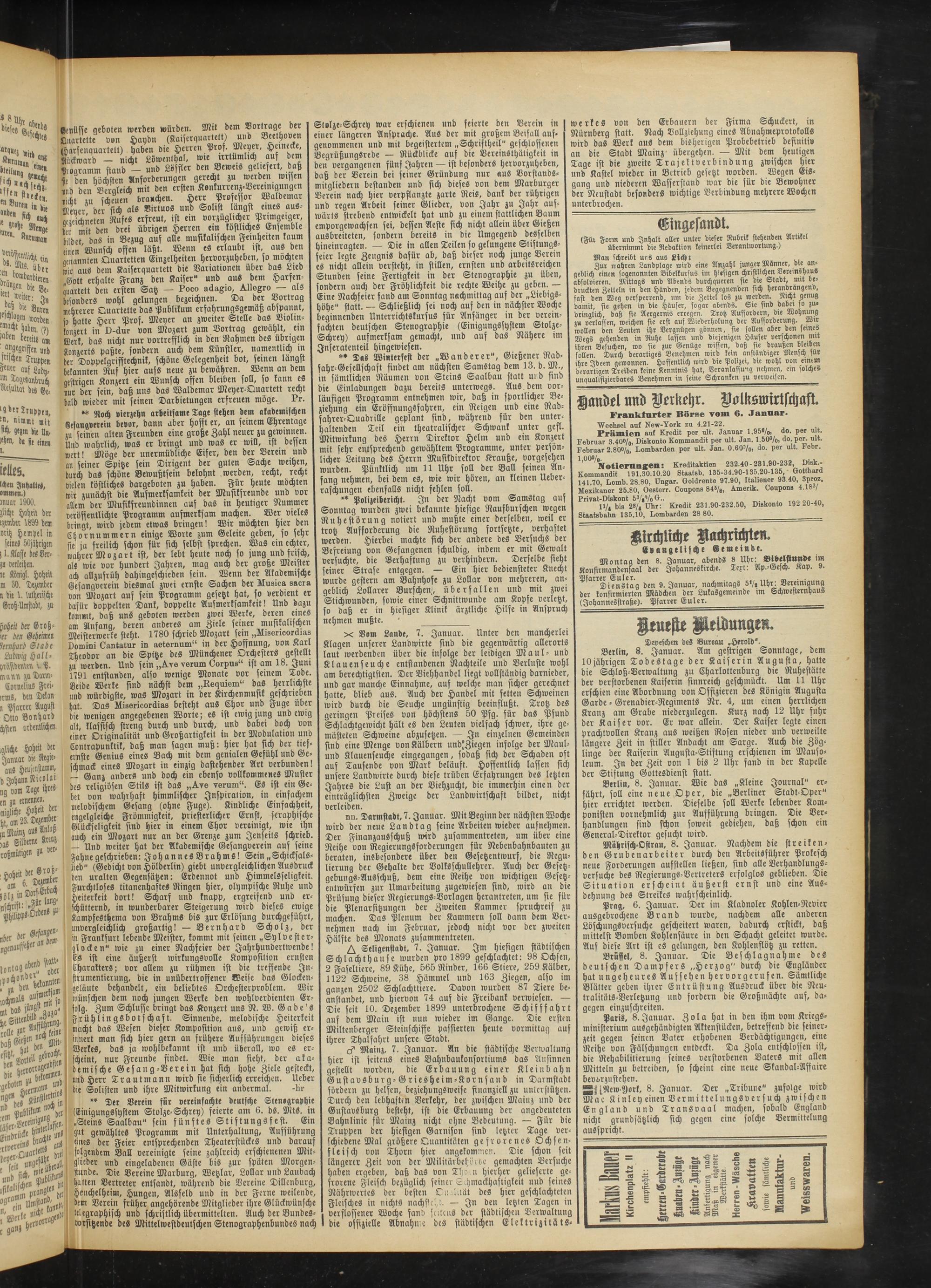 Montag den 8. Januar, abends 8 Uhr: Bibelstttttdo im Konfirmandensaal der Johanneskirche. Text: Ap.-Gesch. Kap. 9. Pfarrer @^6^ g cyQnuaT/ nachmitags 5*/, Uhr: Vereinigung der konfirmierten Mädchen der Lukasgemeinde rm Schwesternhaus (Johannesstraße). Pfarrer Euler.