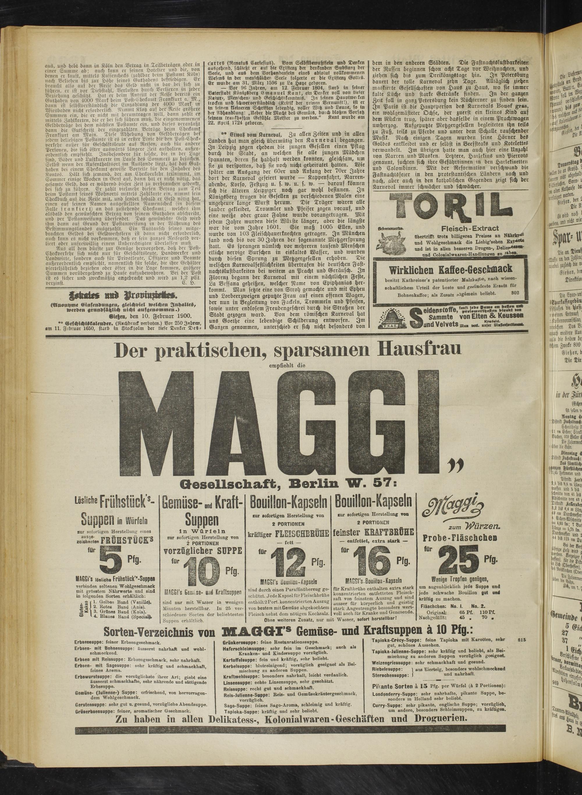 Gieße«, den 10. Februar 1900.