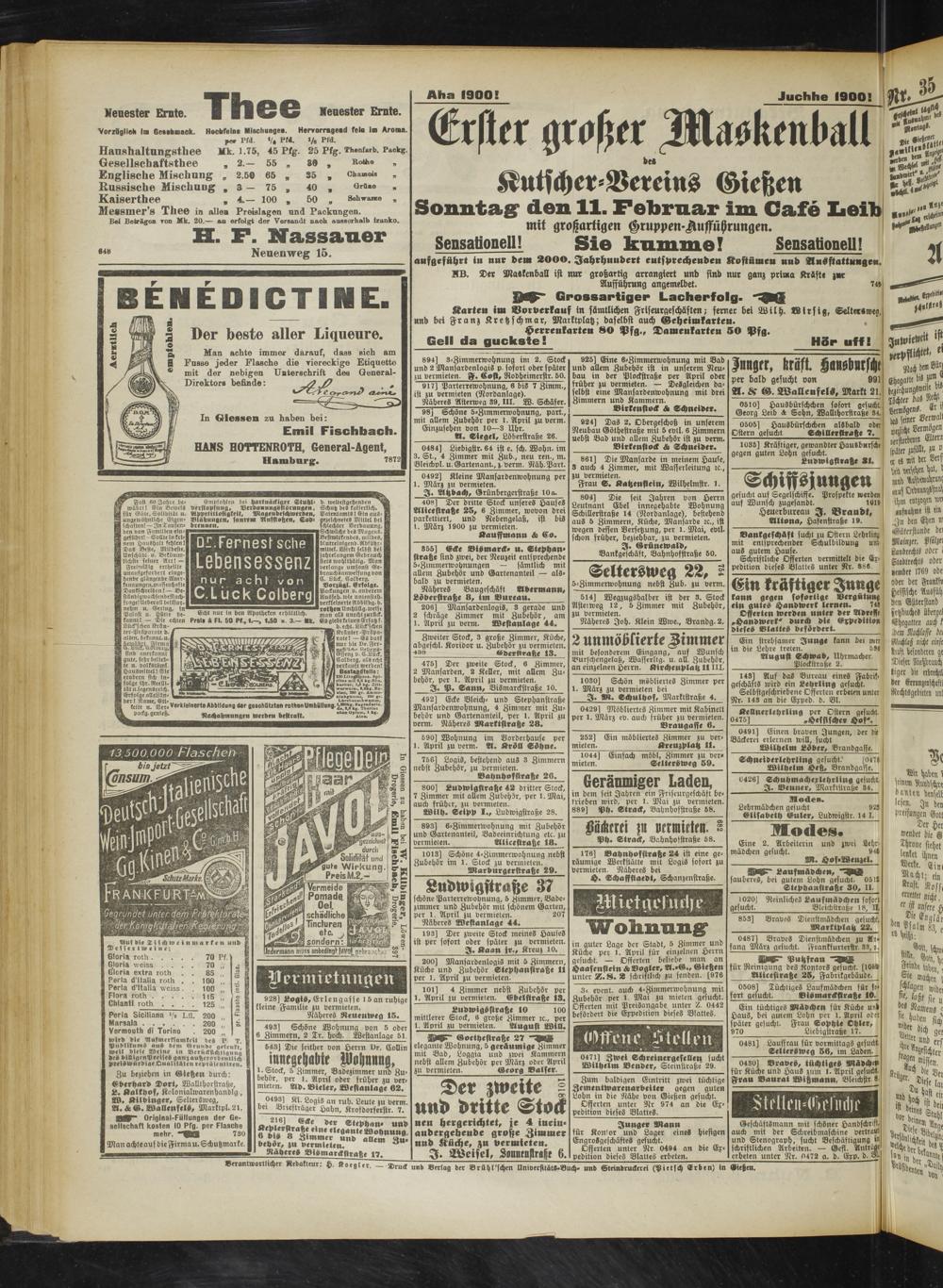 Zu beziehen in Gießen durch: Eberhard Dort, Wallthorstraße, L. Kalkhof, Kolonialwarenhandlg, W. Kilbinger, Seltersweg, A. & G. WallenfelS, Marktpl. 21.