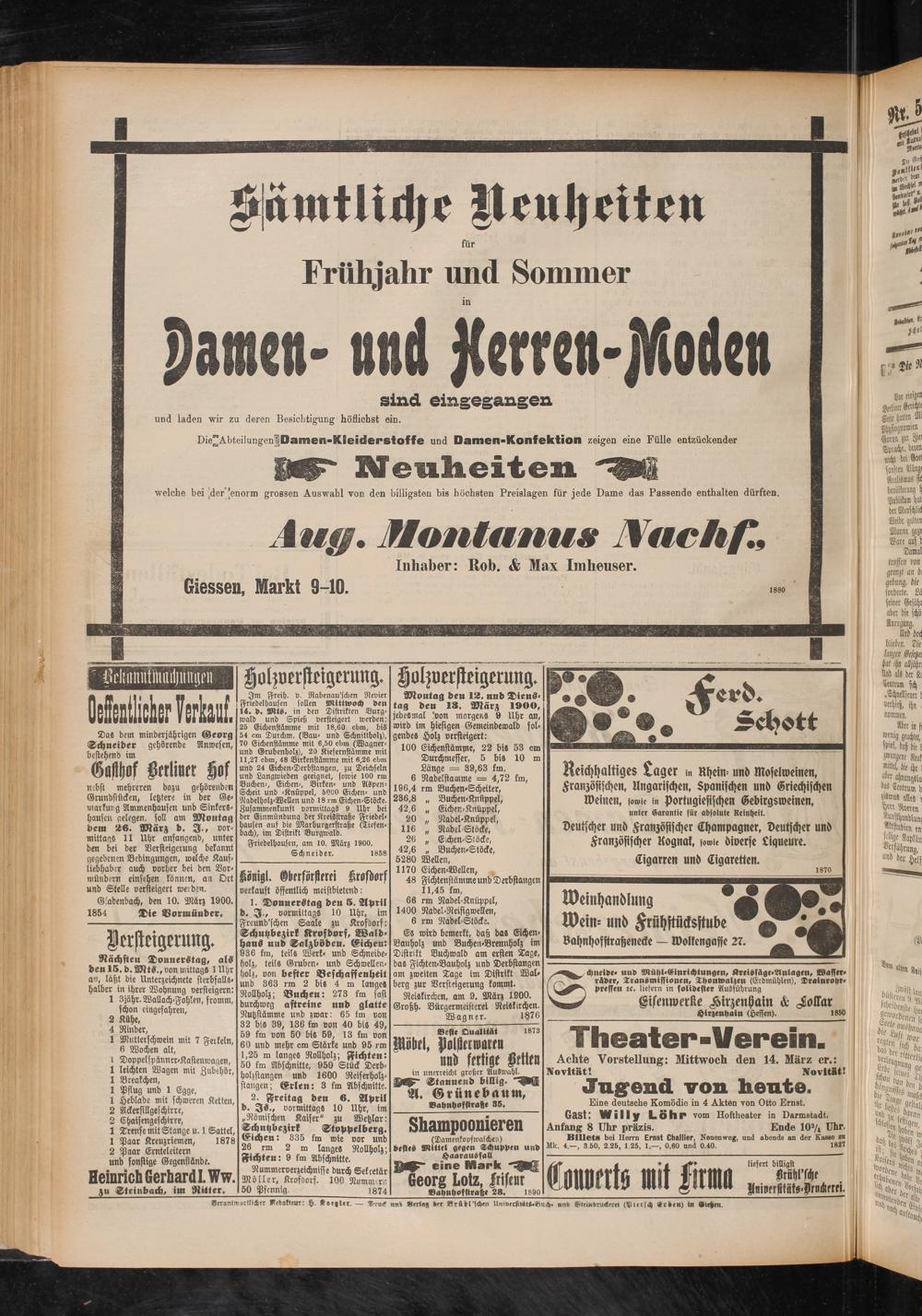 Gladenbach, den 10. März 1900. 1854 Die Vormünder.