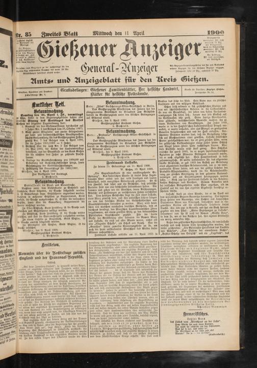 ö. Festsetzung des Voranschlags für 1900/1901. Gießen, den 4. April 1900.