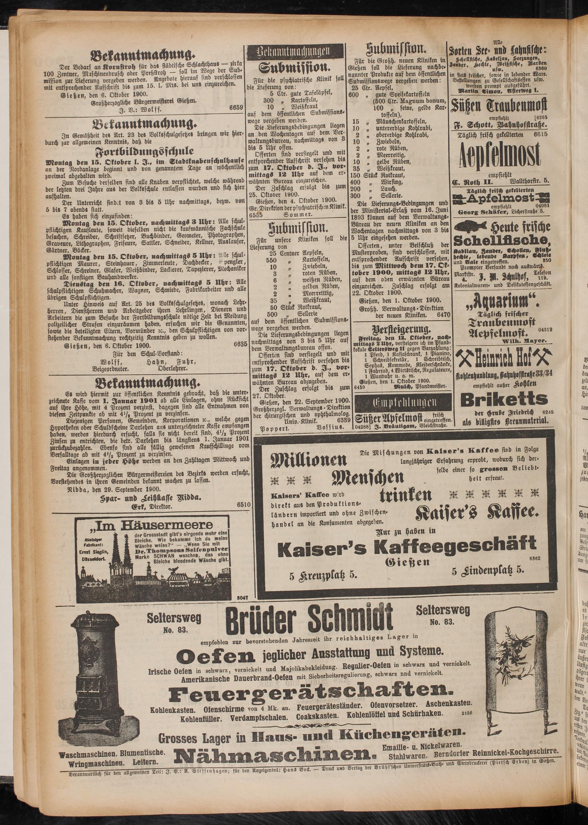 Gießen, den 1. Oktober 1900. I ~ önfifftt