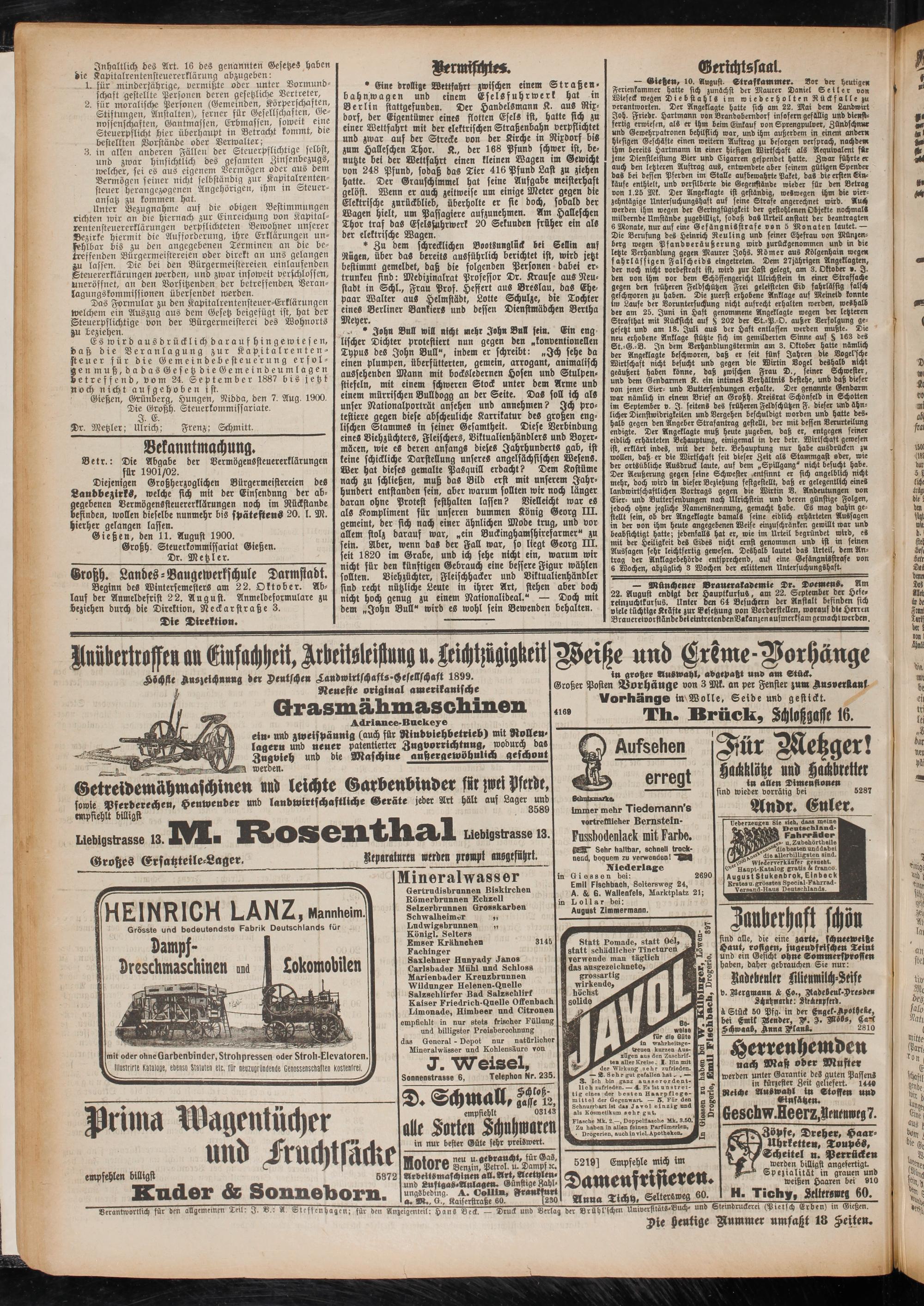 Gießen, den 11. August 1900.