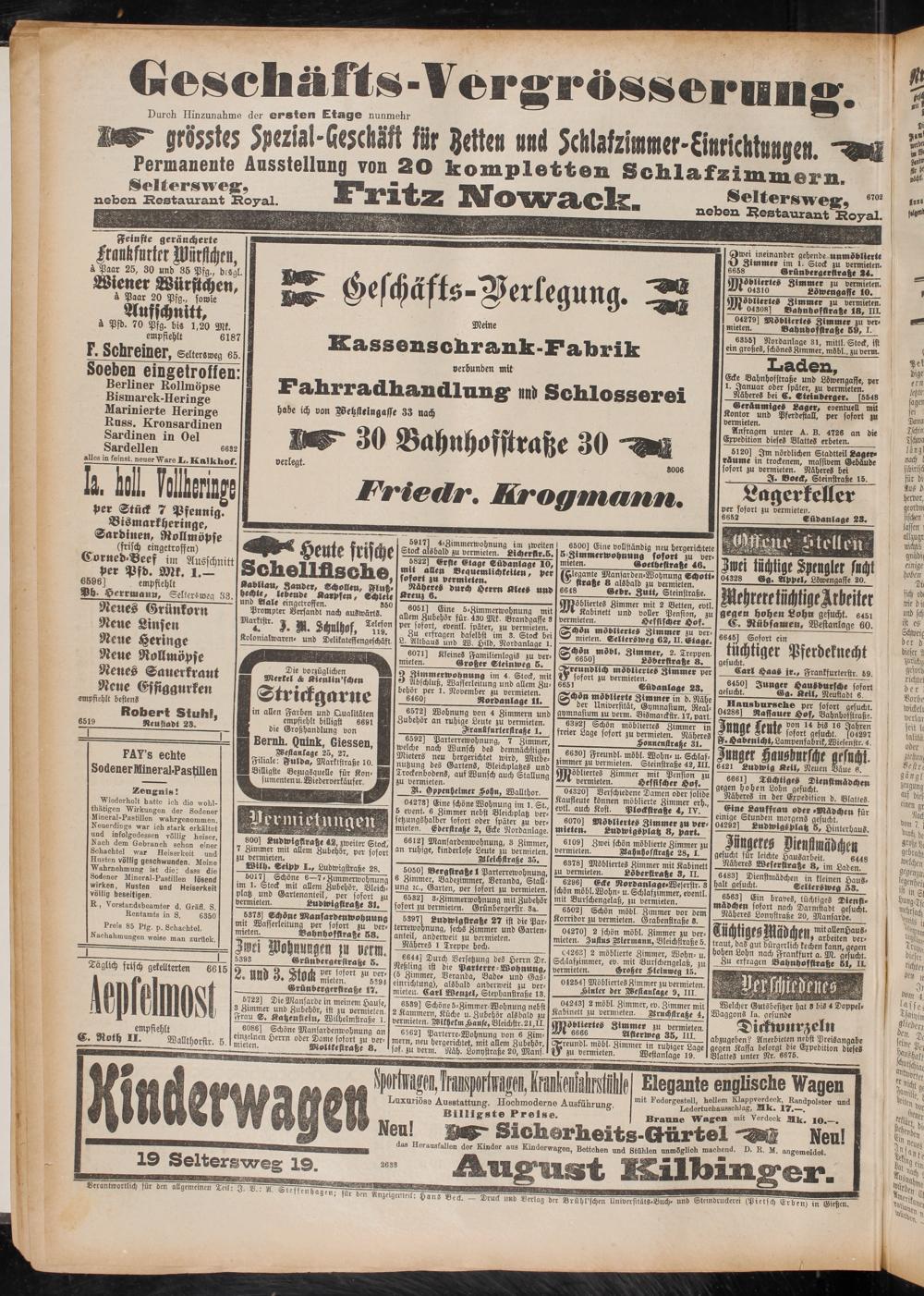 Näheres in der Expedition d. Blattes.