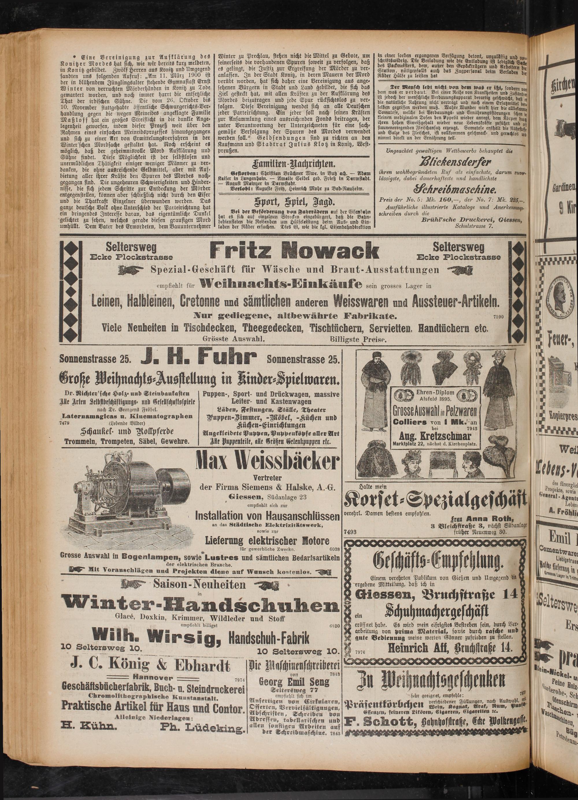 Winter zu Prechlau, stehen nicht die Mittel zu Gebote, um seinerseits die vorhandenen Spuren soweit zu verfolgen, daß es gelingt, die Justiz zur Ergreifung der Mörder zu veranlassen. In der Stadt Könitz, in deren Mauern der Mord verübt worden, hat sich daher eine Vereinigung aus angesehenen Bürgern in Stadt und Land gebildet, die sich das Ziel gesteckt hat, mit allen Kräften zu der Aufklärung des Mordes beizutragen und jede Spur rücksichtslos zu verfolgen. Diese Vereinigung wendet sich an alle Deutschen jeder Parteirichtung. Ein jeder soll nach seinen Kräften zur Ansammlung eines ausreichenden Fonds beitragen, der unter Verantwortung der Unterzeichneten für eine sachgemäße Verfolgung der Spuren des Mordes verwendet werden soll." Geldsendungen sind zu richten an den Kaufmann und Stadtrat Julius Klotz in Könitz, Westpreußen.