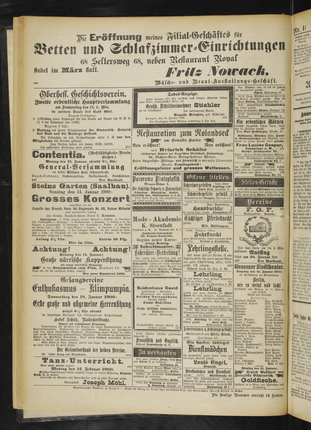 Gefällige Anmeldungen erbitte möglickst vorher in meiner Wohnung, «onnen- Pratze 5, zu macken.