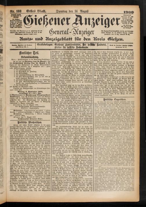 Nr. 188 Erstes Blatt.______Dienstag den 14 August