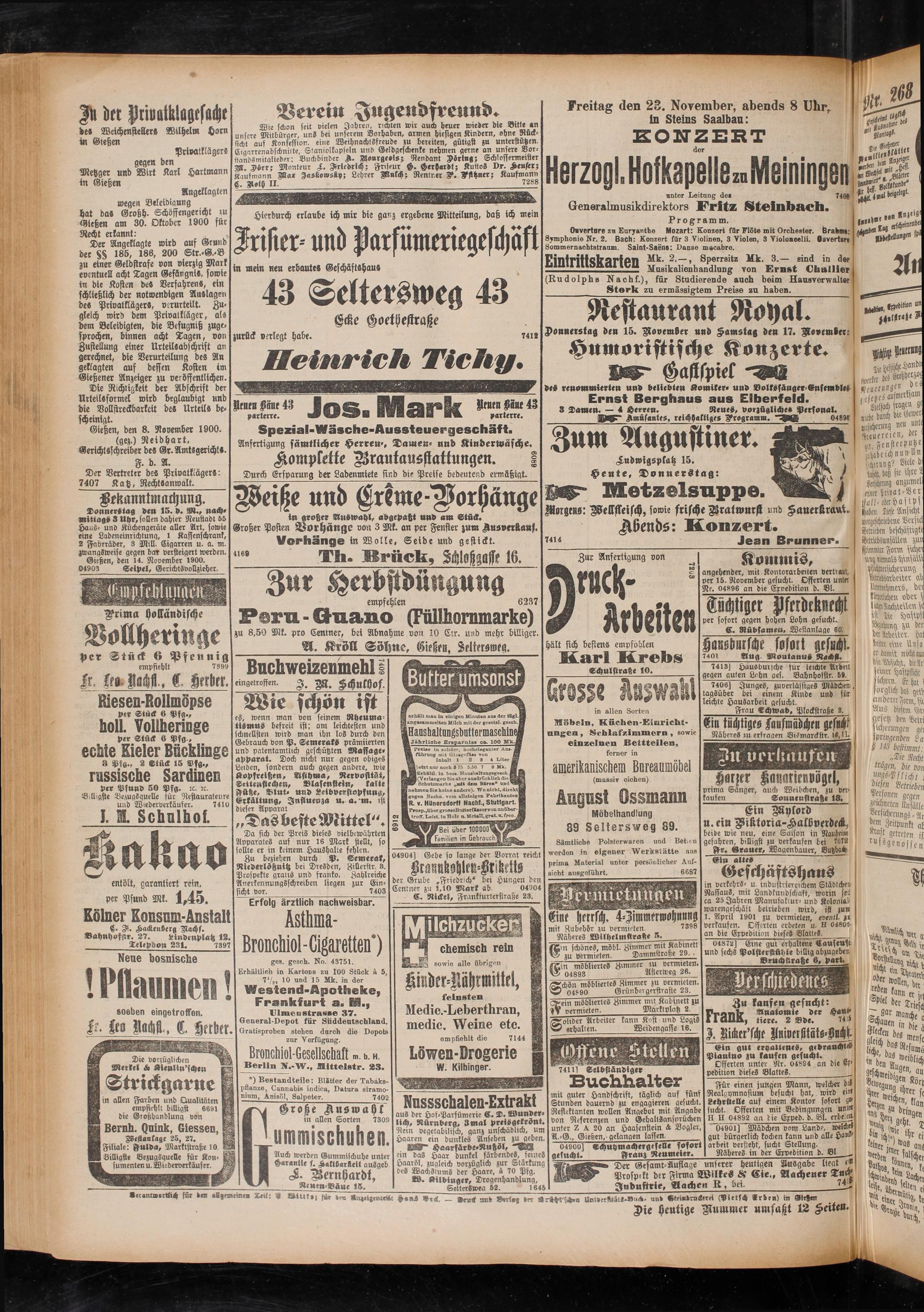 Gießen, den 14. November 1900. 04903 Seipel, Gerichtsvollzieher.