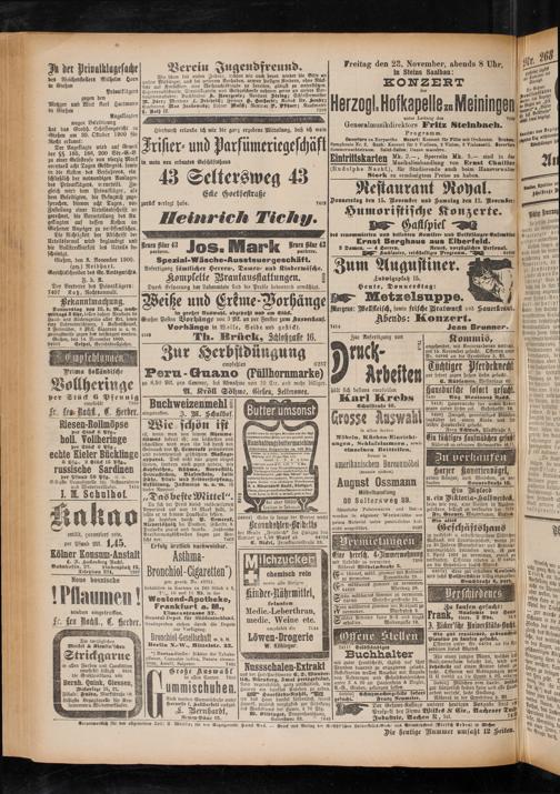wegen Beleidigung hat das Gcoßh. Schöffengericht ui Gießen am 30. Oktober 1900 für Recht erkannt: