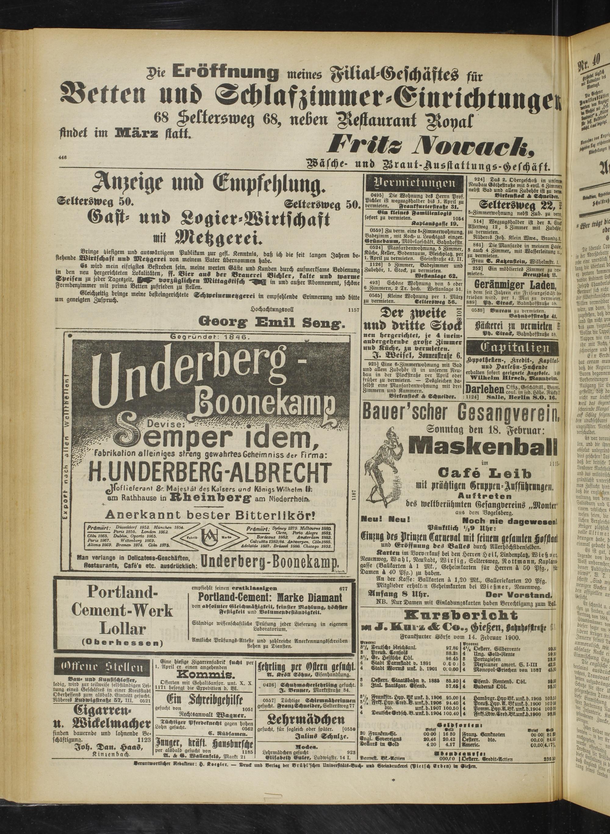 Fraakfutter Äörse vom 14. Februar 1900.