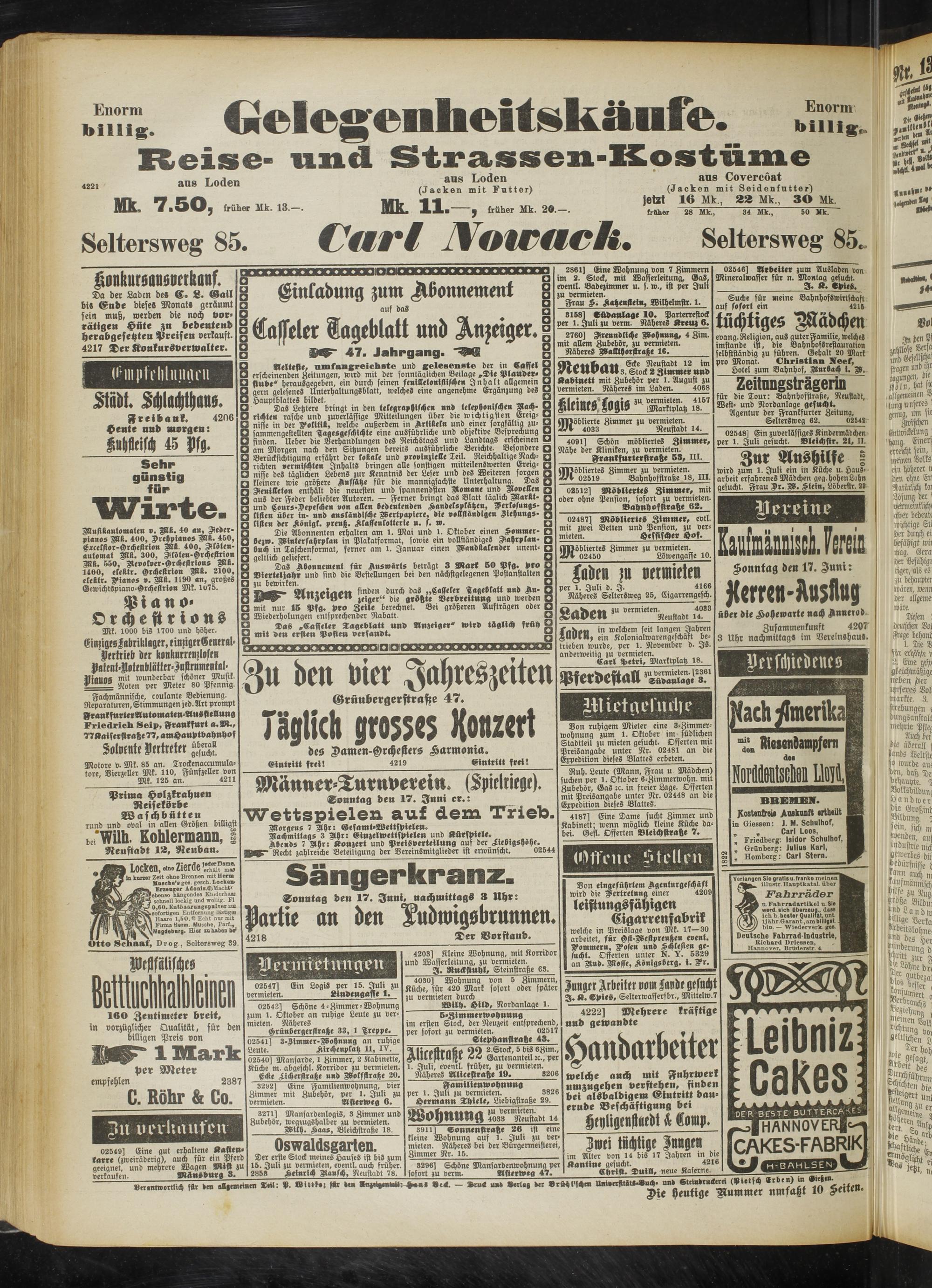 3 Das Abonnement für Auswärts beträgt 3 Mark 50 Pfg. pro O