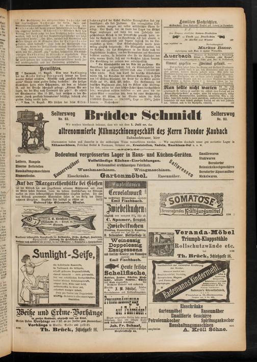 Wegen vorgerückter Saison habe meine seitherigen, schon sehr billigen Preise noch wesentlich ermäßigt. 5385 Joh. Fr. Schaaf, renommiertestes Fahrradgeschäst in Gießen, Wetzsteinstraße 44.