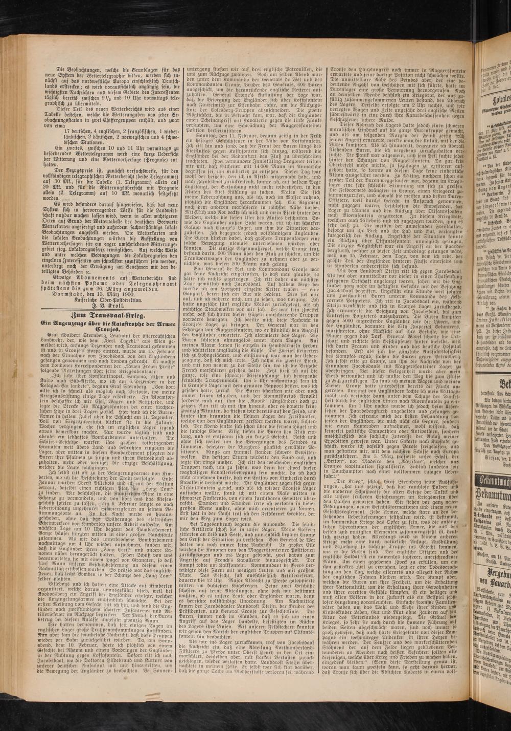 Etwaige Abonnements auf Wetterberichte sind beim nächsten Postamt oder Telegraphenamt spätestens bis zum 26. März anzumelden.