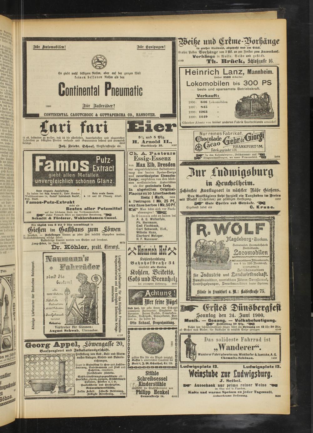 In Giessen echt zu haben bei A. & 6 Wallenfels, Ph. Herrmann, Emil Fischbach, Carl Schwaab, HoflL, Wilhelm Haas, Eberhard Metzger.