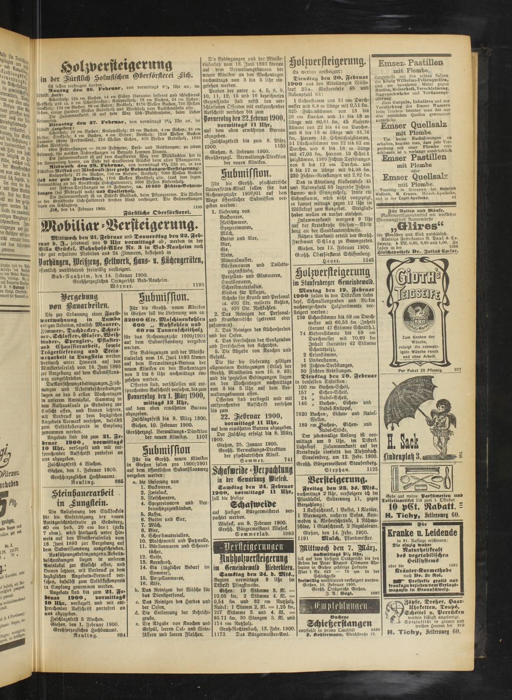 Gießen, den 14. Febr. 1900. 1191 Mulch, Pfandmeister.