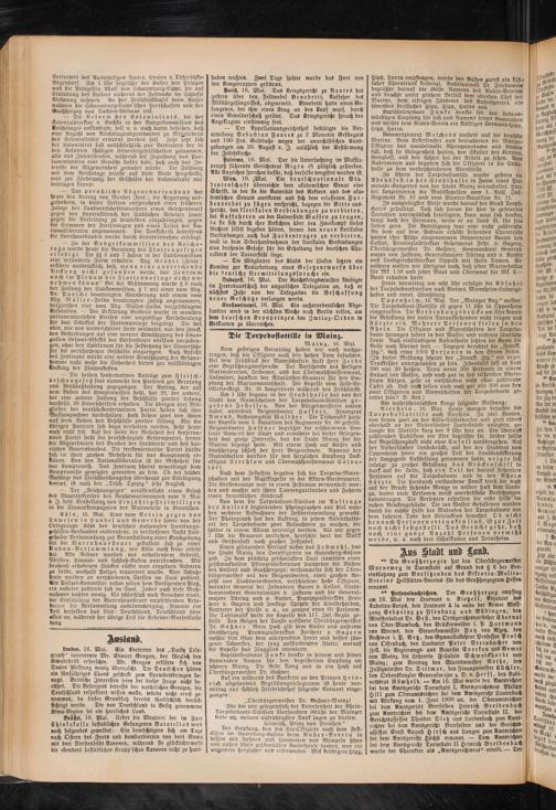 Nierstein, 16. Mai. Heute morgen besuchte die Torpedoflottille auch Nierstein. In vier Booten, von denen zwei an der Köln-Düsseldorfer und zwei etwas oberhalb an der Niederländer Landebrücke anlegten, gelangte die Flottille kurz vor 9 Uhr hier an. Ein überauzahlreiches Publikum am Ufer begrüßte sie. Leider sollte der Begrüßungsakt nicht ohne Unfall vorübergehen. Auf der Niederländer Landebrücke, auf der der Stadtrat von Oppenheim sowie ein großer Teil der Landbevölkerung der Umgegend Aufftellung genommen hatte, neigte sich infolge zu großer Belastung das Brückenschiff so stark auf die Seite, daß ein Teil der darauf stehenden Personen auf die Torpedoboote und in den Rhein stürzte. Die hierdurch entstandene Panik trieb die noch auf der Brücke stehende Menge in wilder Hast dem Lande zu, wobei viele Personen meist unerhebliche Verletzungen davontrugen. Die Verletzten erhielten die erste Hilfe im nahen Brückengebäude. Die ins Wasser GefaUenen wurden durch die rasche Hilfe der Matrosen der Torpedoboote vor dem sicheren Tode des Ertrinkens bewahrt. Ob nicht dennochPersonen ertrunken sind, ist zurZeit noch nicht fest gestellt. Das Gerücht geht, daß noch eine ganze Anzahl Personen vermißt toerbe, it. a. noch drei (Ähulkinder aus Deinsheim.