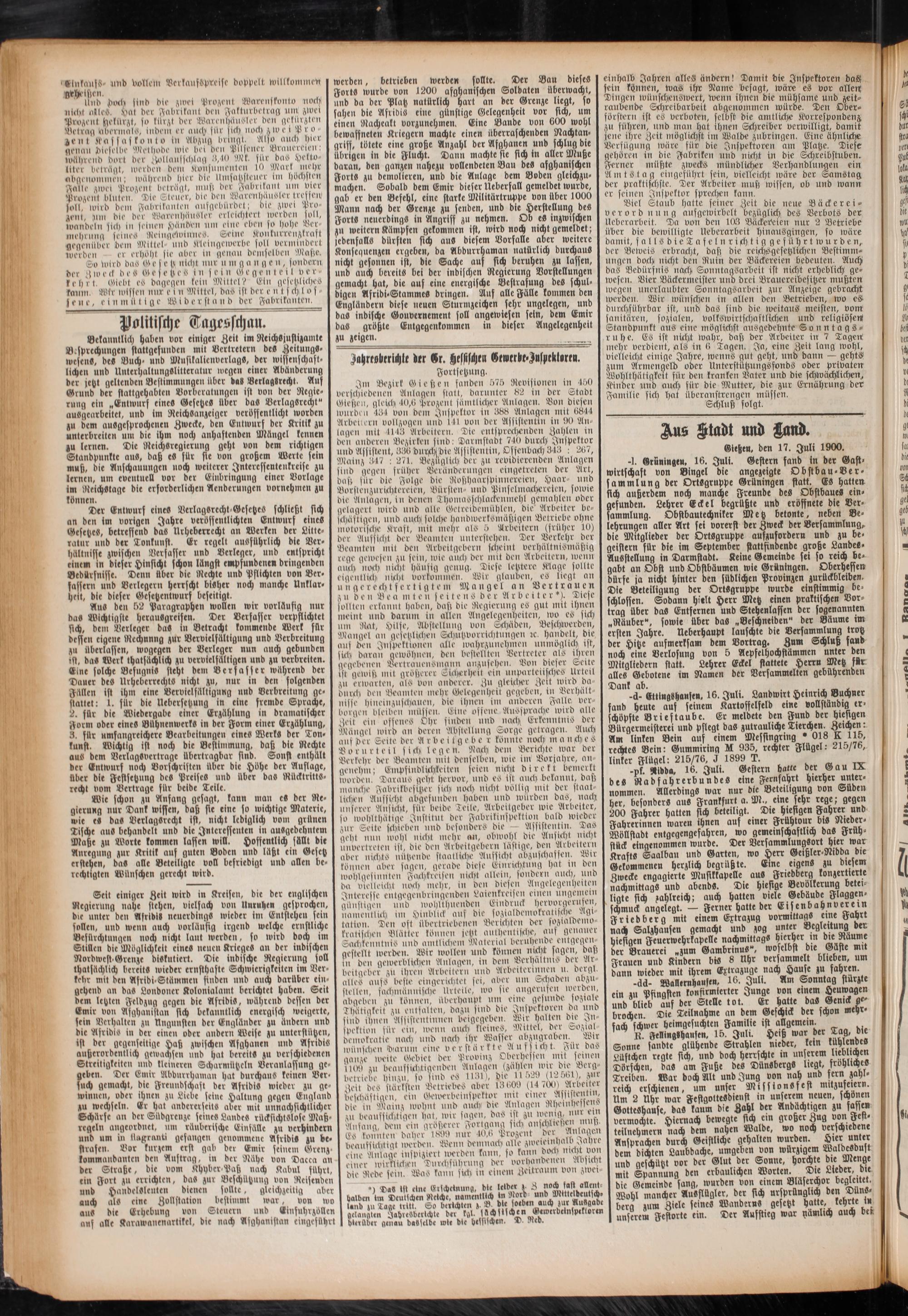 Im Bezirk Gießen fanden 575 Revifioncn in 450 verschiedenen Anlagen statt, darunter 82 in der Stadt Gießen, glcifbi 40,6 Prozent fcimtlid^r Anlagen. Bon diesen wurden 434 von dem Inspektor in 388 Anlagen mit 6844 Arbeitern vollzogen und 141 von der Assistentin in 90 Anlagen mit 4143 Arbeitern. Die entspred-enden Zahlen in ben anderen Bezirken sind: Darmstadt 740 durch Inspektor und Assistent, 336 durch die Afsistentin, Offenbach 343 : 267, Mainz 347 : 271. Bezüglich der zu revidierenden Anlagen sind gegen früher Veränderungen eingetreten der Art, daß für die Folge die Roßhaarspinnereieu, Haar und BorslenzurWereieii, Bürsten- und Pinselmarhereieii, sowie die Anlagen, in denen Thomasschlackenmehl gemahlen oder gelagert wird und alle Getreidemühlen, die Arbeiter bc fchäftigen, unb auch foldje handwerksmäßigen Betriebe ohne niotorifdH* Kraft, mit mehr als 5 Arbeitern (früher 10) der Aufsicht der Beamten unterstehen. Der Verkehr der Beamten mit den Arbeitgebern scheint verhältnismäßig rege gewesen zu sein, wie auch, der mit den Arbeitern, wenn auch nodh nicht häufig genug. Diese letztere Klage sollte eigentlich iiifty! Vorkommen. Wir glauben, es liegt an ungerechtfertigtem Mangel an Vertrauen zu de n B e a m 1 e ii seitens d e r A r beit e r *). Diese sollten erkannt haben, daß die Regierung es gut mit ihnen meint und darum in allen Angelegenheiten, wo es sich um Rat, Hilke, Abstellung von Schäden, Beschwerden, Mangel an gesetzlichen Schutzvorrichtungen re. handelt, die aus den Inspektionen alle wahrzunehmen unmöglich ist, sich daran gewöhnen, den bestellten Vertreter als ihren gegebenen Vertrauensmann anzuseheii. Von dieser Seite ist gewiß mit größerer Sicherheit ein unparteiisches Urteil zu erwarten, als von anderer. Zu gleicher Zeit wird da durch den Beamten mehr Gelegenheit gegeben, in Verhält iiiffe hineinzuschauen, die ihnen im anderen Falle ver borgen bleiben müssen. Eine offene Aussprache wird alle Zeit ein offenes Ohr finden und nach Erkenntnis der Mängel wird an deren Abstellung Sorge getragen. Auch ans per Seite der A r b c i t g e b e r könnte noch in a n ch e S V o r urteil sich 1 e g e n. Rach dem Berichte war der Verkehr ber Beamten mit denselben, wie im Vorjahre, an genehm; Enipfindl Meilen seien nicht direkt bemerkt worden. Daraus gebt hervor, und es ist auch bekannt, daß manche Fabrikbesitzer sich nody nicht völlig mit der staut lichen Aussicht nbgefunben haben unb würden das, nach unserer Ansicht, für beide Teile, Arbeitgeber wie Arbeiter, so wohlthätige Institut ber Fabrikinspektion bald wieder zur Seite schieben und besonders bie — Assistentin. Das geht nun wohl nicht mehr an, obwohl die Ansicht nidjt unvertreten ist, die den Arbeitgebern lästige, den Arbeitern aber nichts nützende staatliche Aussicht abzuschaffen. Wir können aber sagen, gerade diese Einrichtung hat tu den wohlgesinnten Fachkreisen nidyt allein, sondern auch, und ba vielleicht nOjdy mehr, in ben diesen Angelegenheiten Interesse entgegenbringeuden Laienkreisen einen ungemein günstigen und wohlthuenben Einbruck hervoraernsen, namentlich im Hinblick aus bie sozialdemvkratische Ag> tation. Den ost übertriebenen Berichten der soztalbemo- frati du'ii Blätter können jetzt authentische, auf genauer Sachkenntnis und amtlichem Material beruhende entgegen gestellt werden. Wir wollen und können nicht sagen, daß in den gelverblichen Anlagen, in dem Verhältnis der Arbeitgeber zu ihren Arbeitern und Arbeiterinnen u. bergl. alles niifs befte eingerichtet sei, aber um Schaden avzn stellen, sadymännisclie Urteile, wo sie angerufen werden, ab geben zu können, überlwnpt uni eine gesunde soziale T Hali gleit zn entfallen, dazu sind die Inspektoren da und sind innen Afsistentinnen beigegeben. Wir halten bie Inspektion für ein, wenn auch kleines, Mittel, ber sozial bemoTratie nach und nach ihr Wasser abzugraben. Wir wünschen ibiarnm eine v e r ft ärkt e A u f s i di t. Für bas ganze weite (Miet ber Provinz Oberhessen nut feinen 1109 zu beaufsichtigenden Anlagen (zählen wir bie Berg betriebe hinzu, so |inb eS 1131', die ll r>2.) (1l561), zur Zeit des stärksten Betriebes aber 13 609 (14 ^00) Arbeiter bekräftigen, ein GeU'erbeinspektor mit einer Assi teut", die in Mainz wohnt unb anchi bie Anlagen RheinkKsseu« ,vi VcouftWtgen Hol. mir sagen. baS ist zn iwnifl, nur em Vhtfann, drin rin grbstcri-r Fortgang sich anschiiesici nmp. Eb Iinrnti-U boller 1899 nur 10,6 Prozent ber Anlagen beanssMigt merben. Wenn demnach olle Ameietnliolb 3nl)ie eine Anlage inspiziert werben kann, so kann bo<b nicht vcn einer wirklicheu Durchführung ber vorhandenen .lbsicht die Rede sein. WaS kann sich in einem Zeitraum von zwei-