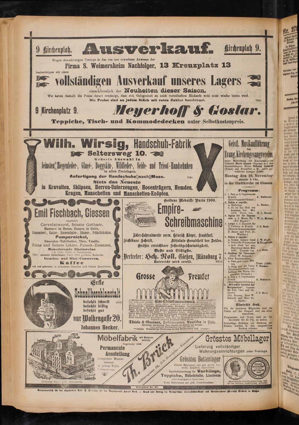 Montag den 19. November abends 6 Uhr, in der Stadtkirche zu Giessen.